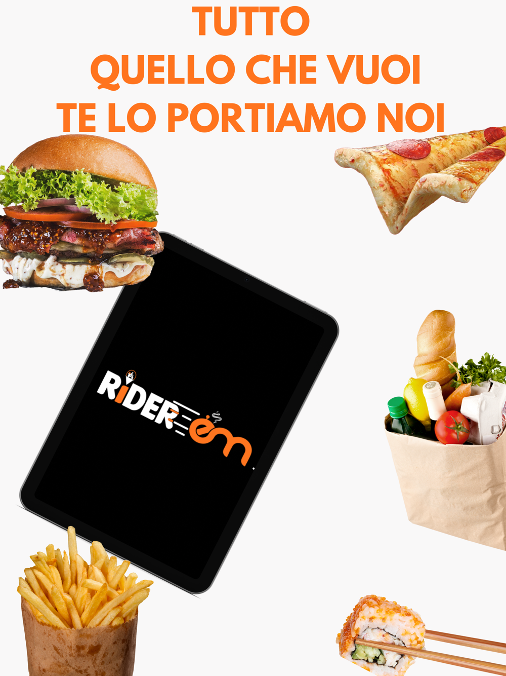 Benvenuto su RIDEREM, l'app di consegna cibo e spesa a domicilio che ti fa risparmiare tempo e fatica. Ordina i tuoi piatti preferiti dai migliori ristoranti locali o fai la spesa nei tuoi negozi di fiducia, il tutto con pochi click sul tuo smartphone.