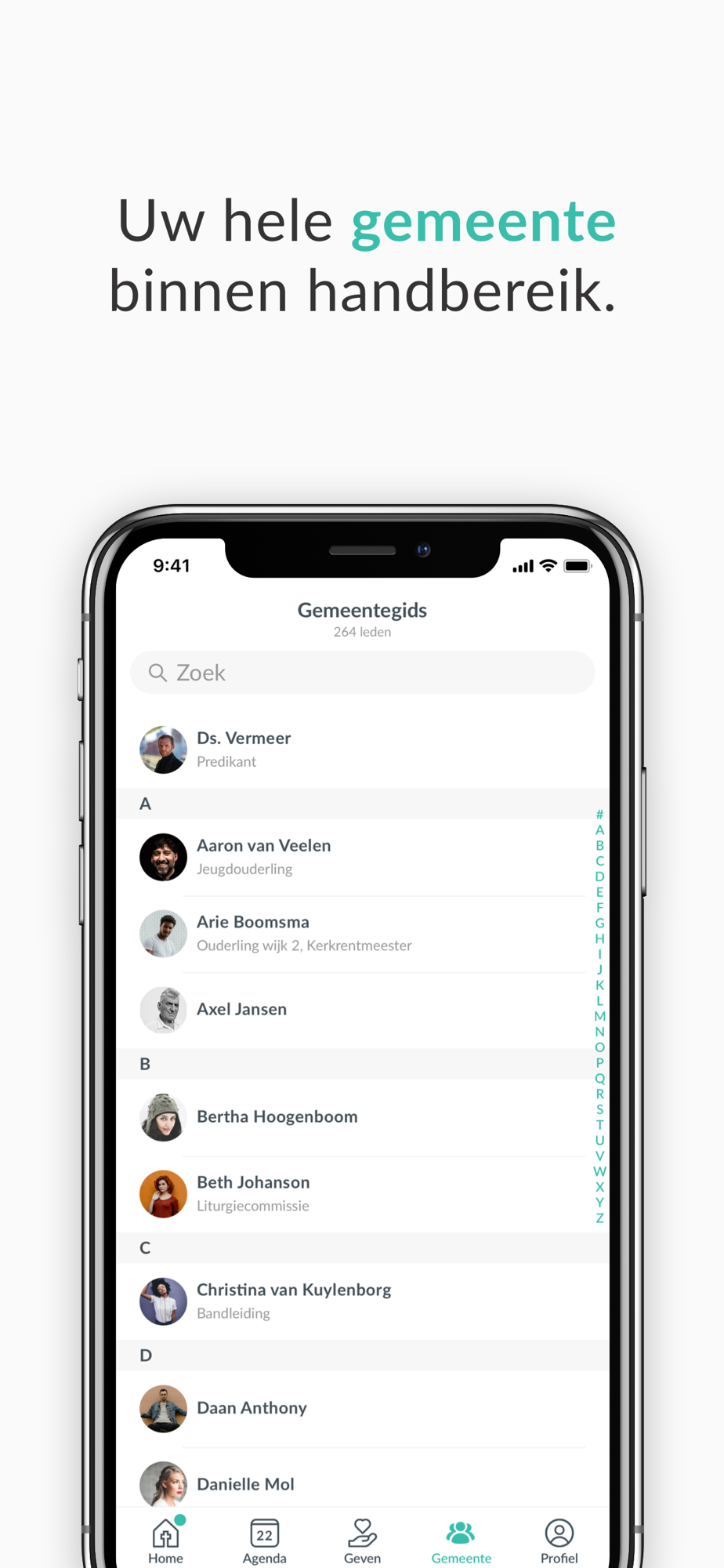 Als gemeente willen wij betrokken zijn met elkaar, efficiënt de organisatie van de kerk onderhouden, elkaar ondersteunen en nog veel meer. Onze eigen mobiele app helpt ons hierbij!
