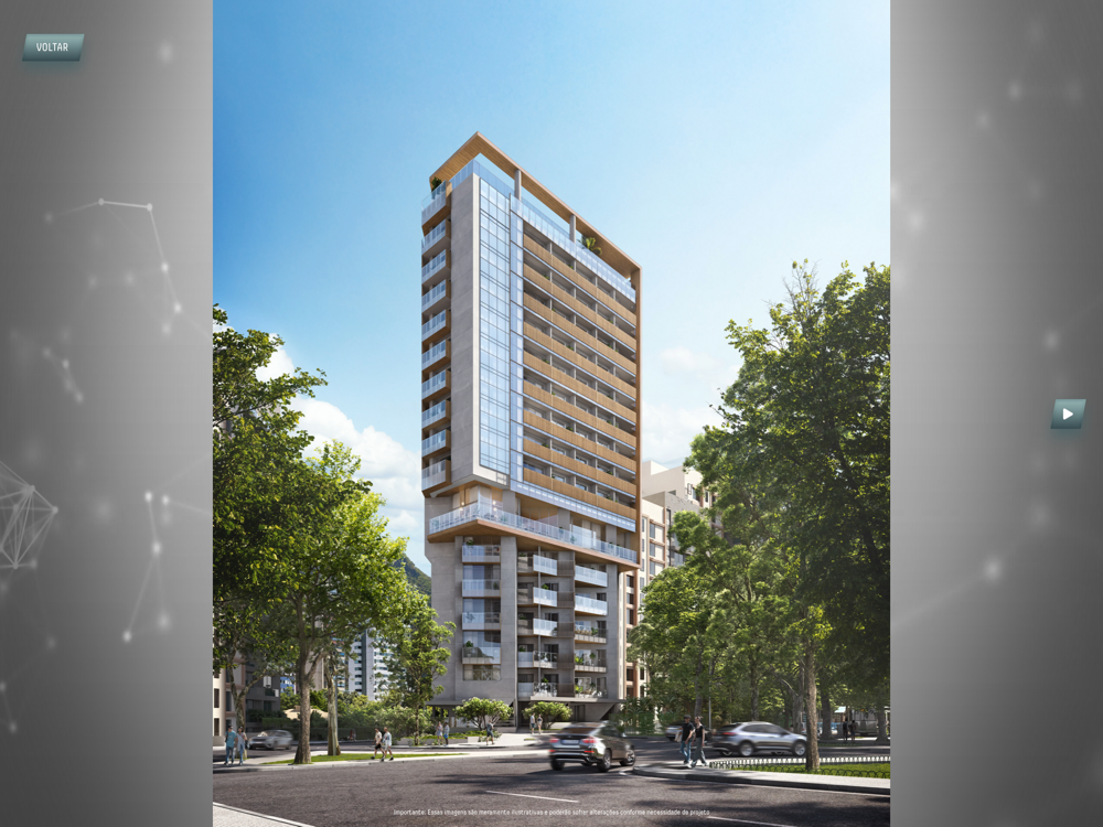 Você verá também a galeria de fotos, perspectivas, plantas, interação com Realidade Aumentada e todas as informações do empreendimento.