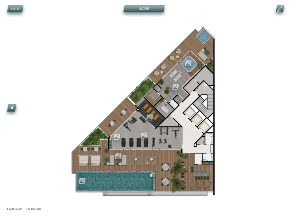 Explore todo conteúdo sobre o empreendimento e interaja com os ambientes e áreas de lazer.