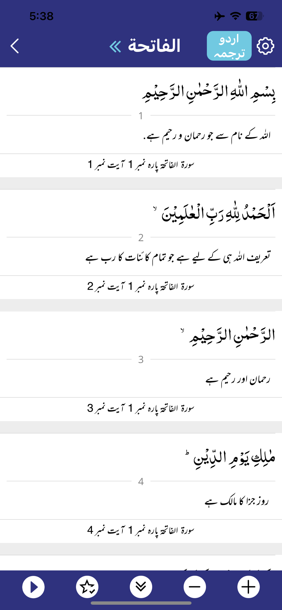 Multilingual Text and Audio: Tafheem Audio provides the Quranic text and audio recitation in three languages, including English, Arabic, and Urdu. Switch between languages effortlessly to read and listen to the Quran in your preferred language, enhancing your comprehension and spiritual experience.