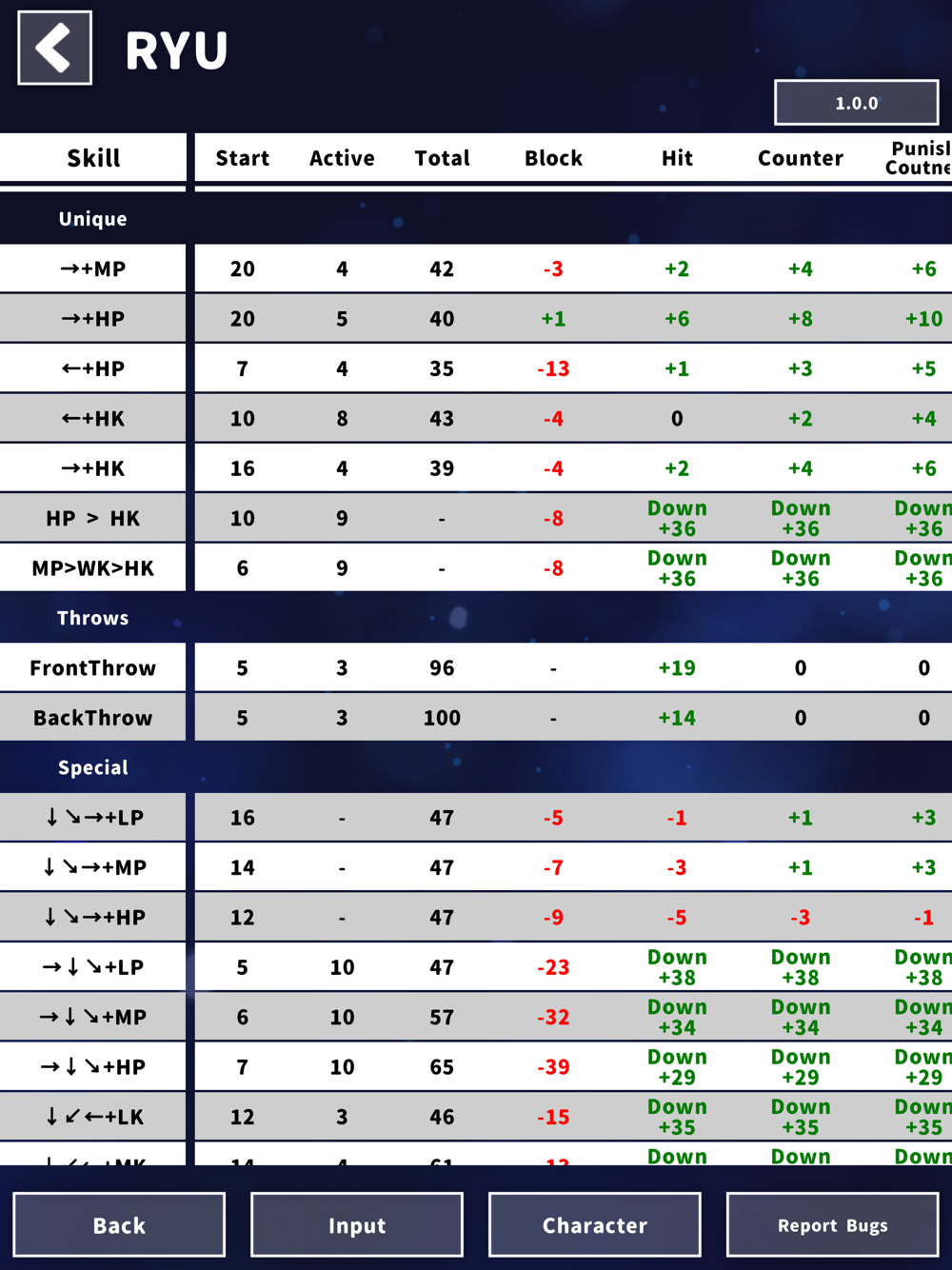 The app currently provides frame data for the following characters. We will continue to add support for more characters through regular updates: