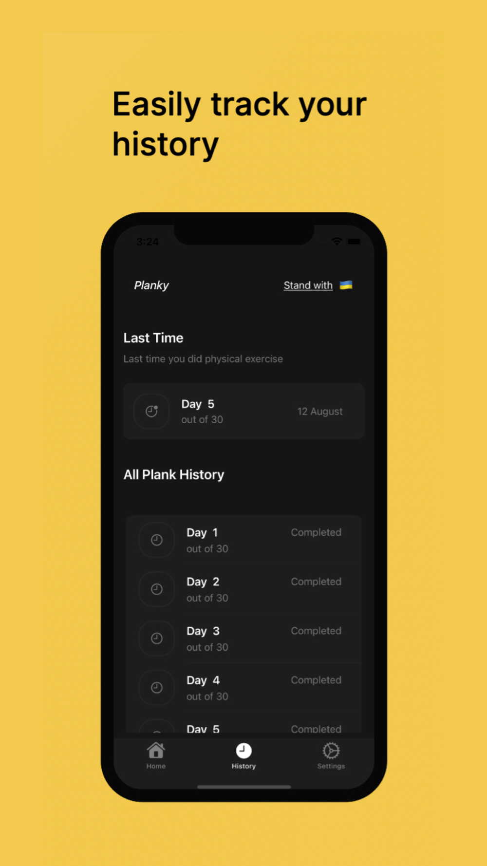 With our Planky app, you can increase your plank time gradually, achieving new records and improving your performance. The app offers a 30-day Planky programme that helps you to train consistently every day for a period of time.