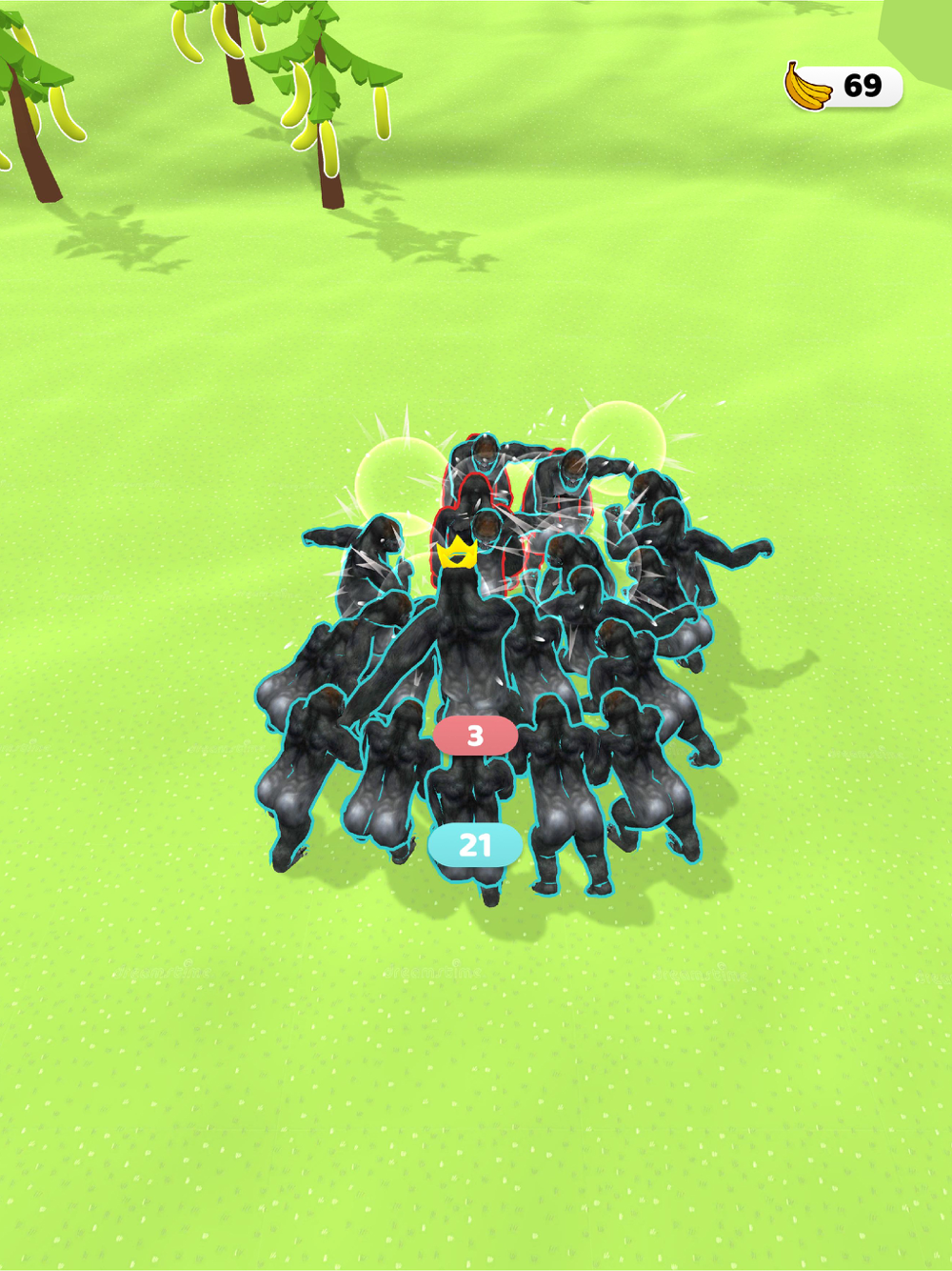 You can live a life as a gorilla now. You can collect bananas with hitting trees. You should feed your gorilla family. When your babies grow up, they will join your tribe and help you to fight with other tribes! You will discover a lot of things as a gorilla!