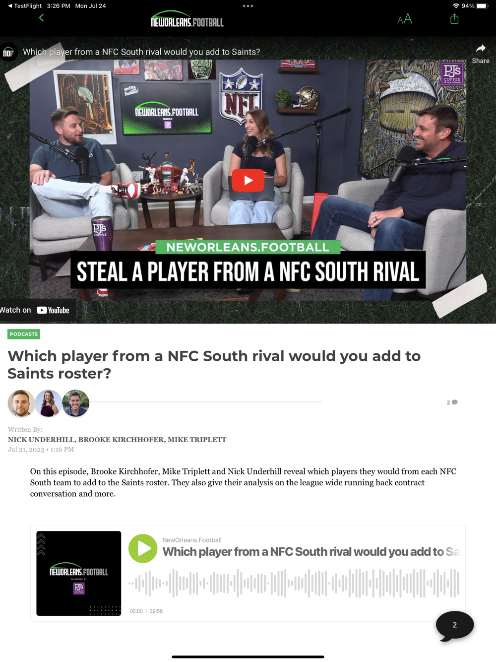 Follow the New Orleans Saints like never before with the NewOrleans.Football app, fueled by columnist Nick Underhill and a full staff of professional journalists.