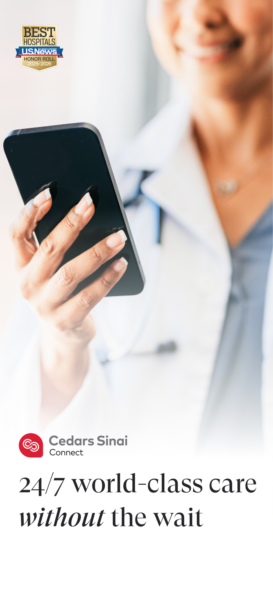 Cedars-Sinai Connect delivers remarkable care that fits your lifestyle, with Cedars-Sinai virtual doctors available 24/7—nights, weekends, and holidays included. Connect with a Cedars-Sinai doctor in minutes or on your schedule, with virtual and in-person interactions fully integrated for an effortless experience.