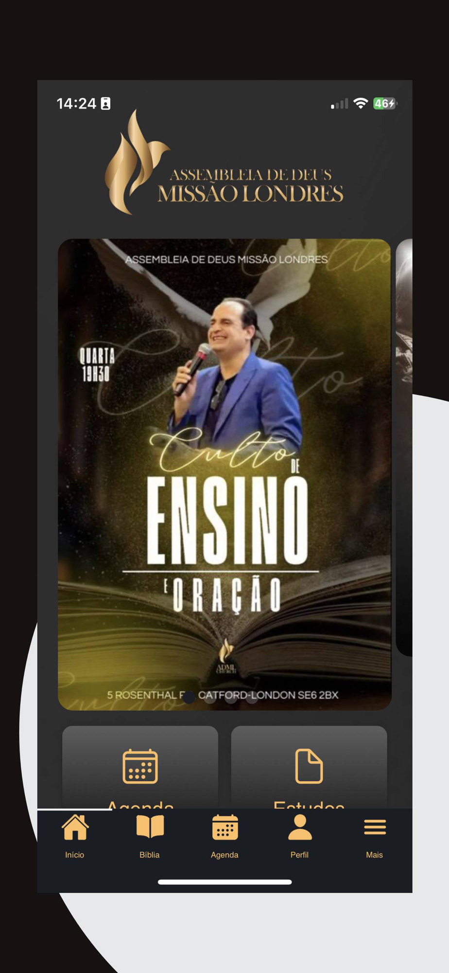 Aplicativo voltado para a Assembleia de Deus Missão Londres, para que os membros possam ter maior contato com notícias, estudos e informativos gerando um local de fácil acesso entre os membros, visitantes e a igreja através de:
