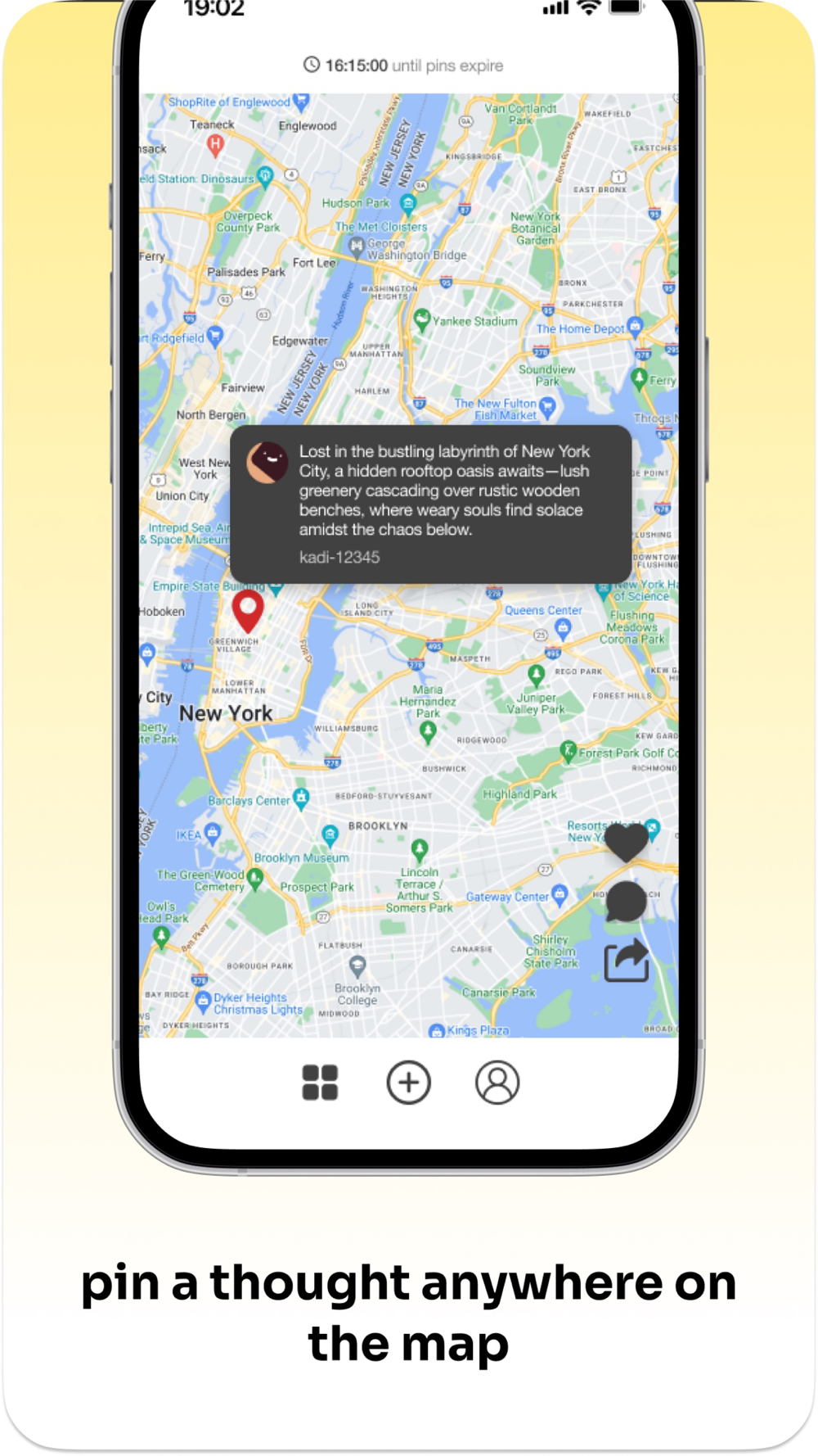 1. pin a thought anywhere on the map.