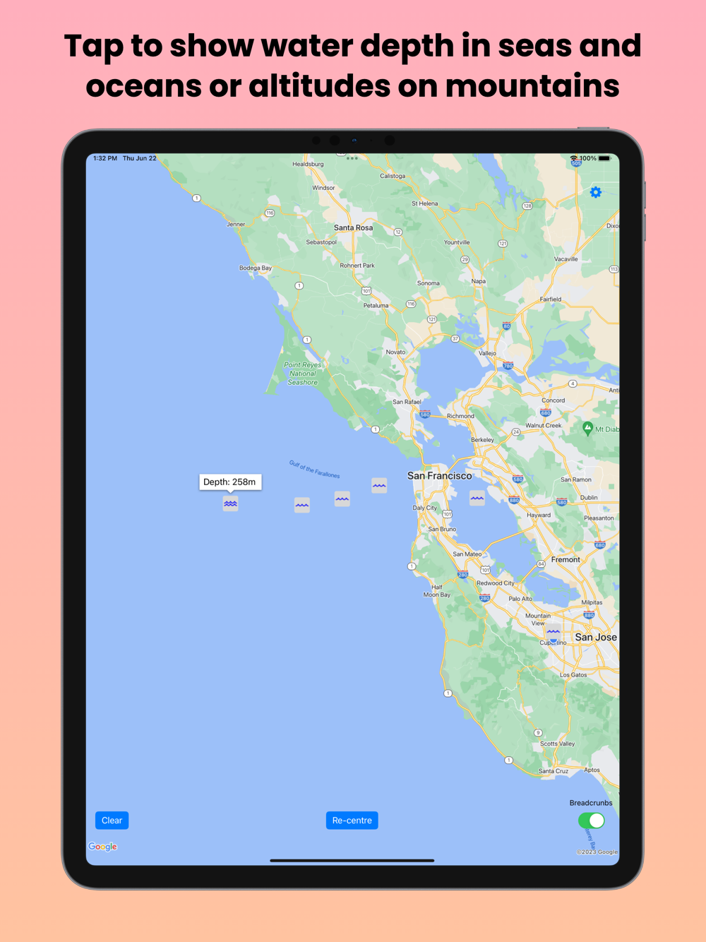Tap to show water depth at sea