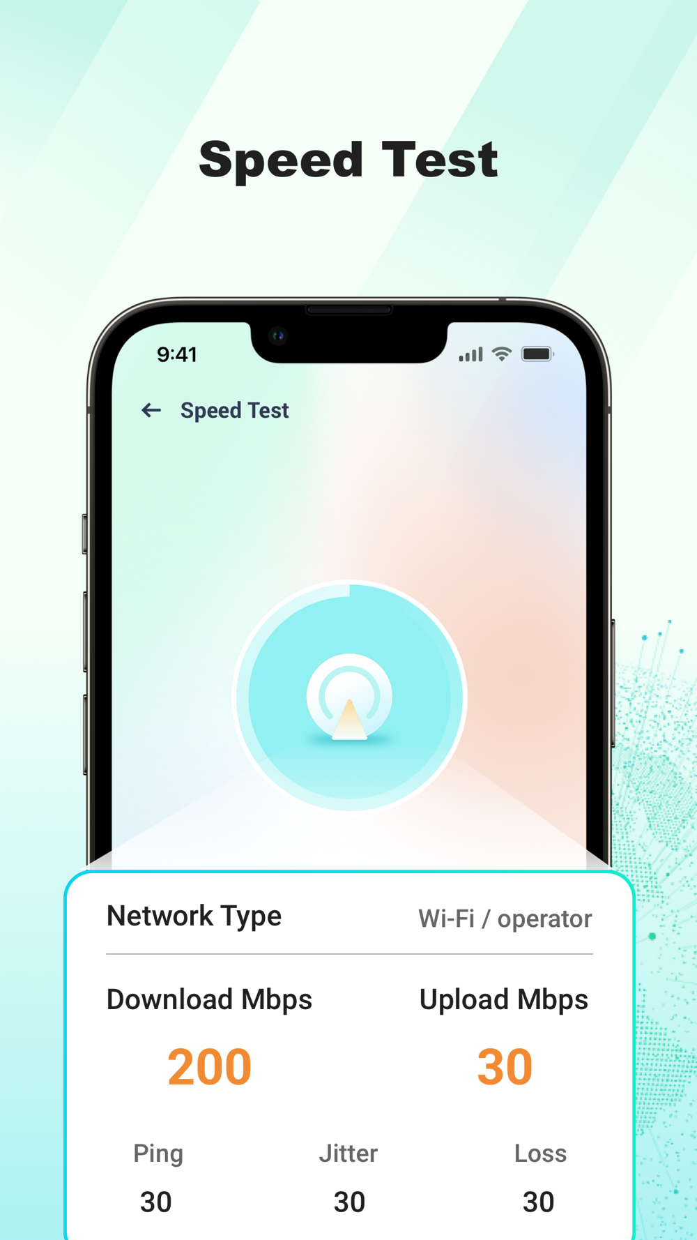 1. Speed Test: Complete the test with one click, complete network download speed, upload speed, Ping, jitter, packet loss test.