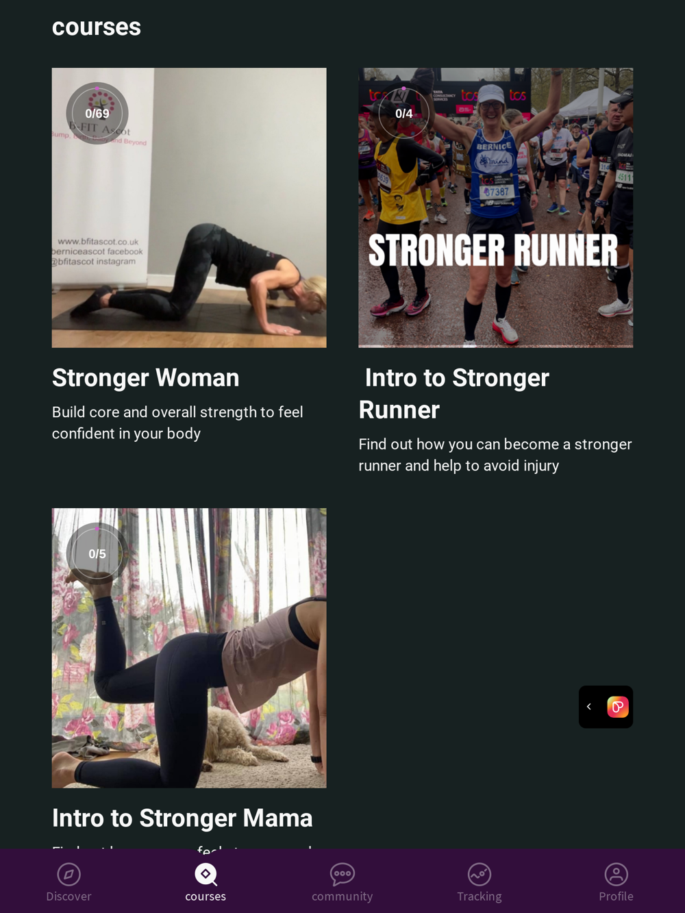 An app for busy women that want to get stronger and more connected to their body? Whether you have had a baby, have older children, approaching menopause or a runner wanting to stay injury free, then there will be a program for you! There is a monthly subscription that will keep you motivated with 10-15 min workout every day.