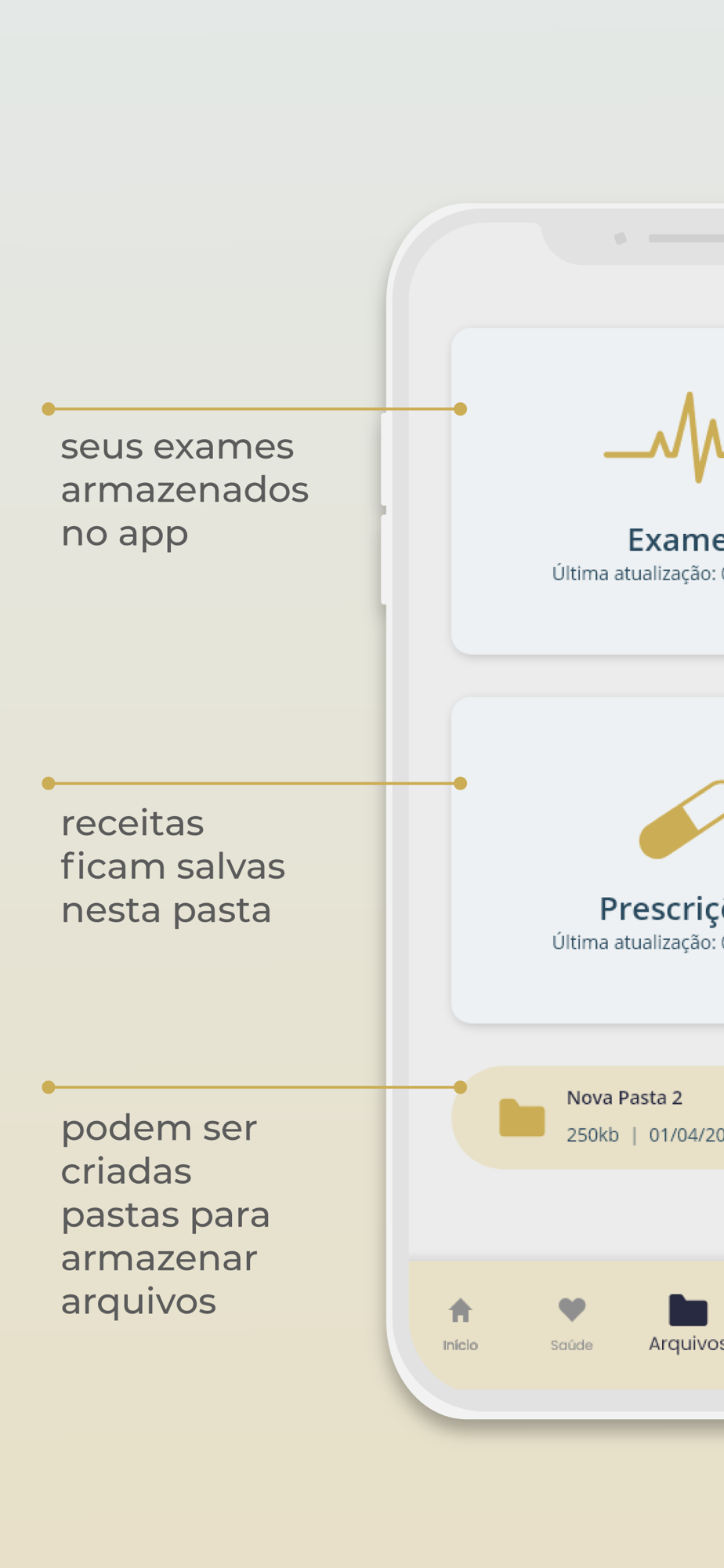 -Receitas, exames e atestados salvos no seu celular