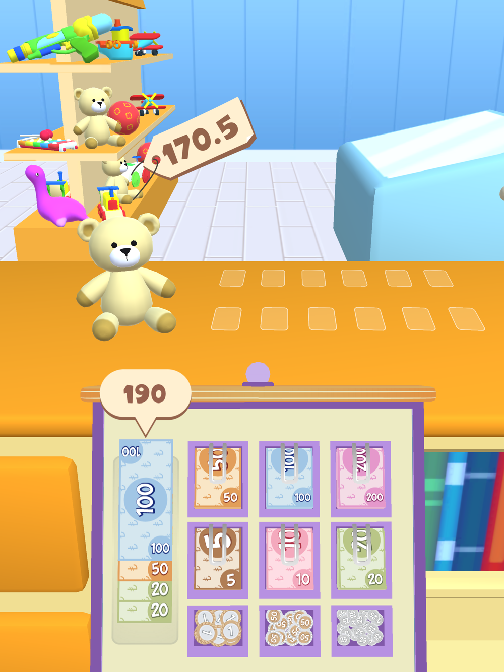 Sell goods in the Super Math Market and calculate changes! Practice math while learning money concept!