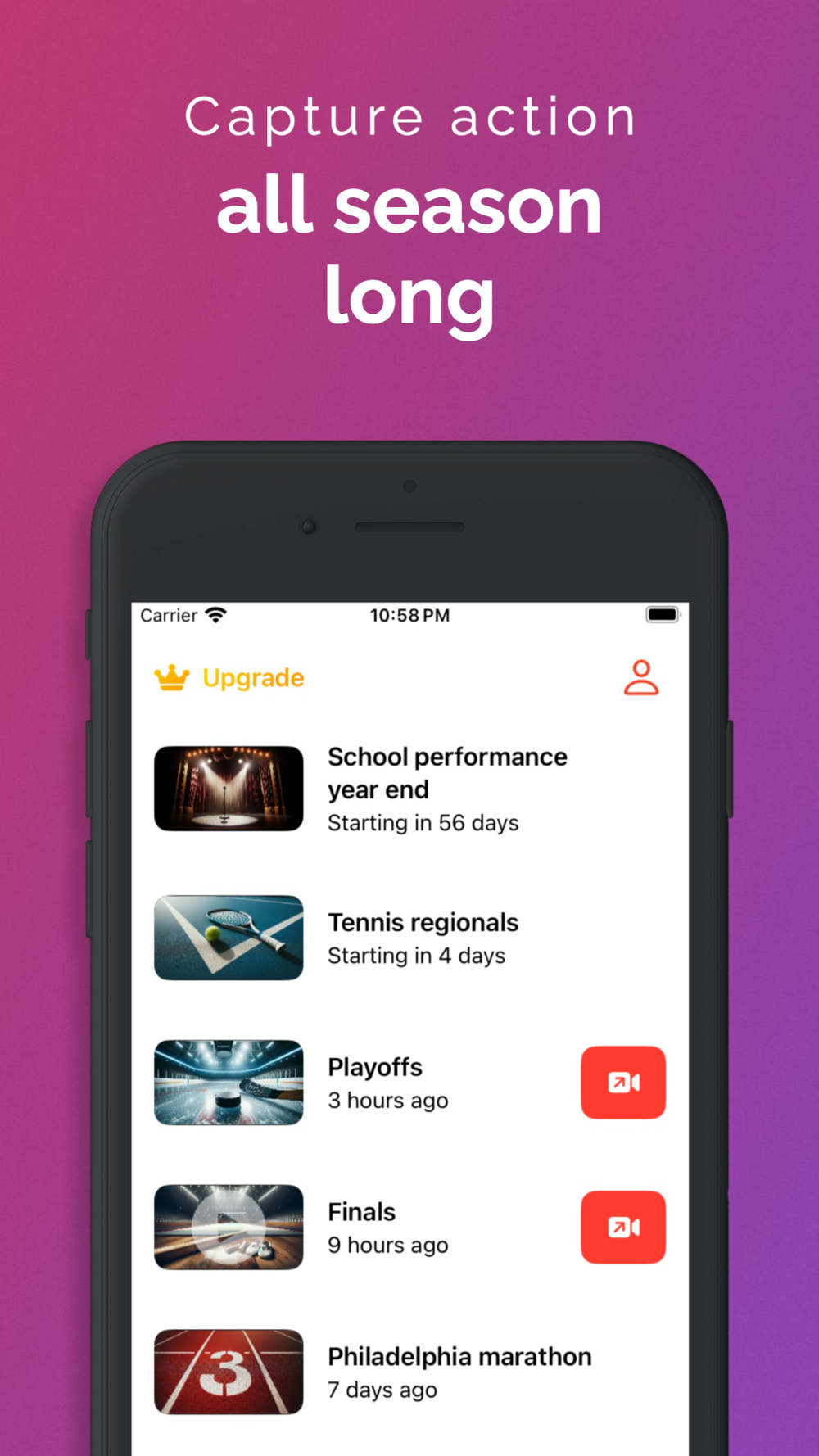 With this app, you can easily live stream games, matches, meets, tournaments, practices, scrimmages, tryouts, playoffs, championships, and more! Never miss out on capturing your child's or team's big moments. Stream from anywhere with a strong internet connection - at home, at the field, at the gym, on the road.
