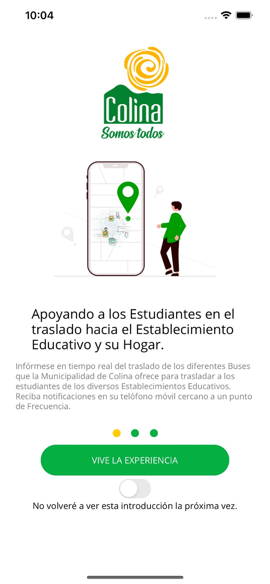 Localízame Colina es una aplicación avanzada que te permite visualizar en tiempo real la geolocalización de los buses de transporte de Educación, Salud y servicios de la Municipalidad de Colina. Nunca antes ha sido tan fácil y conveniente estar al tanto de la ubicación de estos servicios vitales en tu comunidad. Siempre sabrás cuándo llegará el bus a tu ubicación. Esto te permite planificar tus actividades de manera eficiente, ahorrar tiempo y llegar a tus destinos.