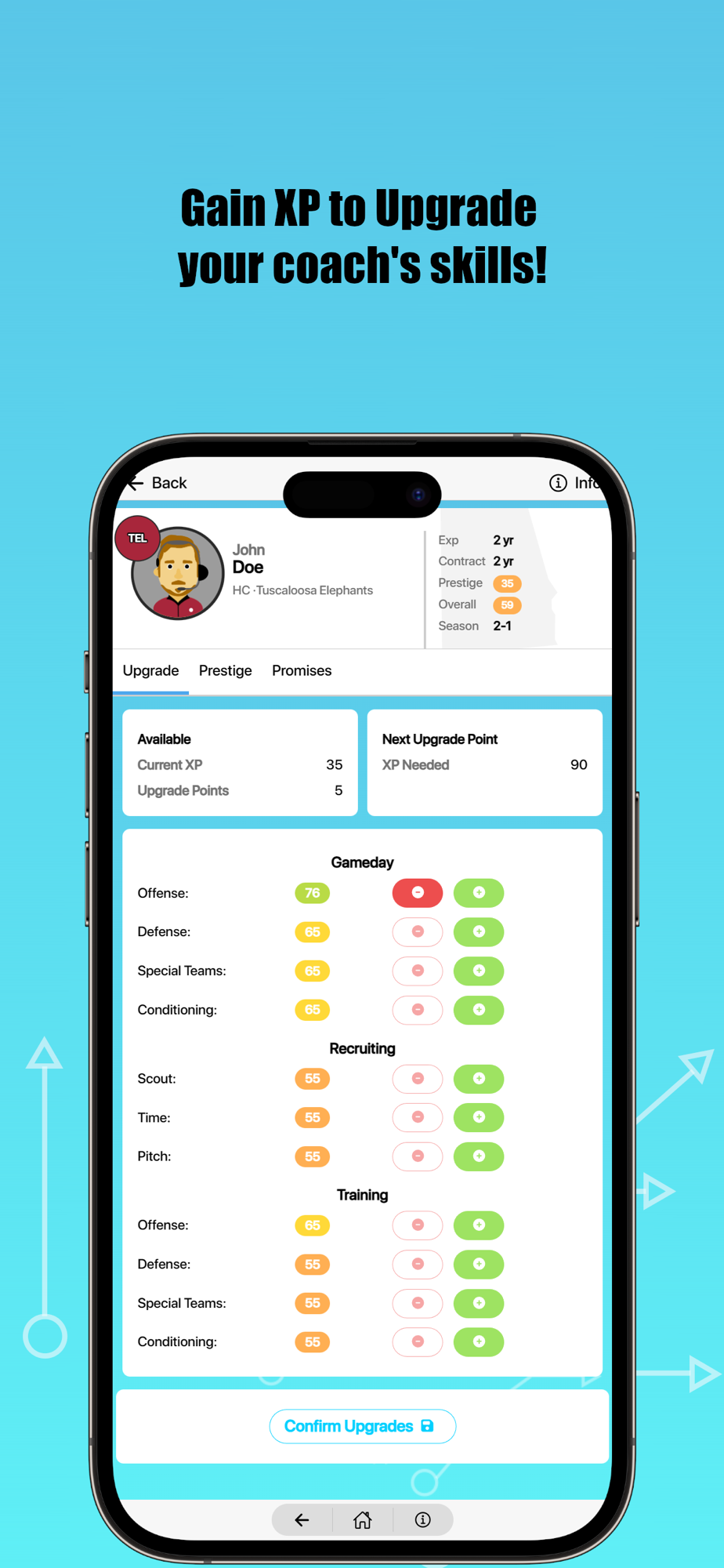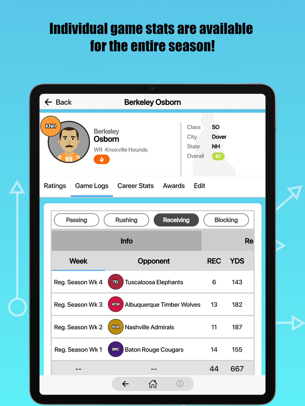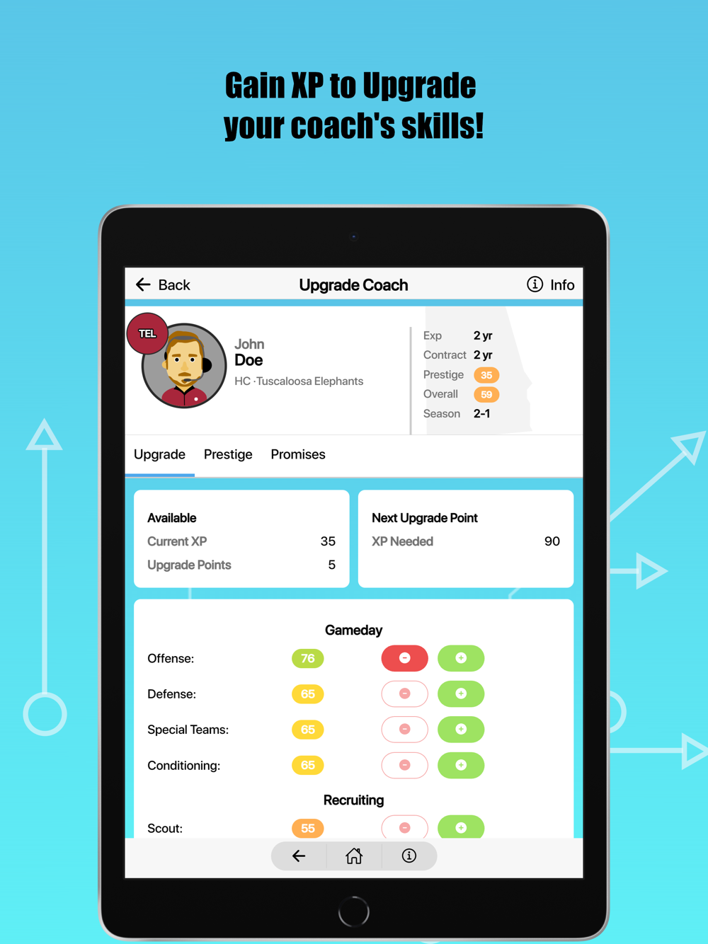 College Football: Dynasty Sim puts you at the helm of a college football team. Do you have what it takes to build your team from the ground up, from a cupcake to a perennial powerhouse? Includes Scouting, Recruiting, Transfer Portal, Coaching Staff, full Play by Play breakdown, Pro Draft, and more!