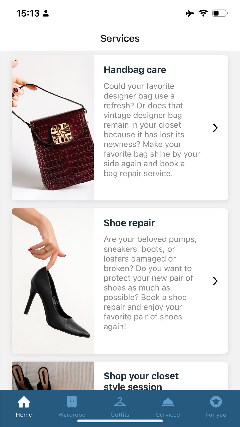 SERVICES: Take care of your beloved items with repair and care services or elevate your style with our styling and wardrobe services.