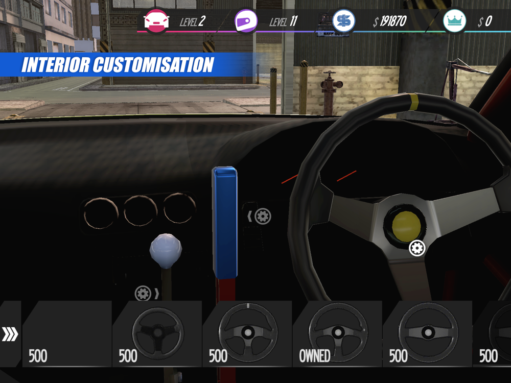 - Customize your car with unique body parts, wide body kits, wheels, spoilers and more!