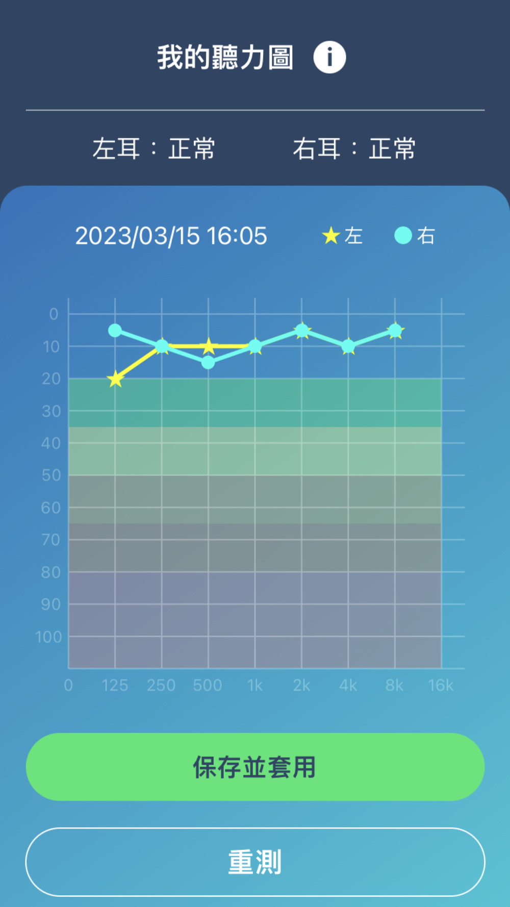 amor Hear APP提供使用者建立個人聽力曲線,讓使用者得到更佳的聆聽體驗。