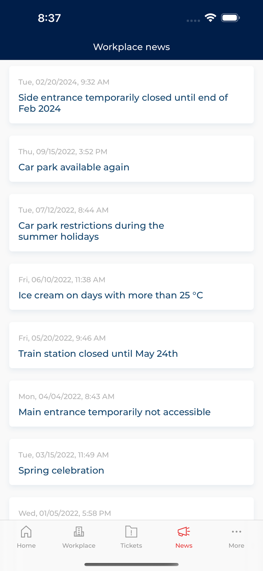 view important information about their workplace (e.g. emergency information, service hotlines, amenities and opening hours)