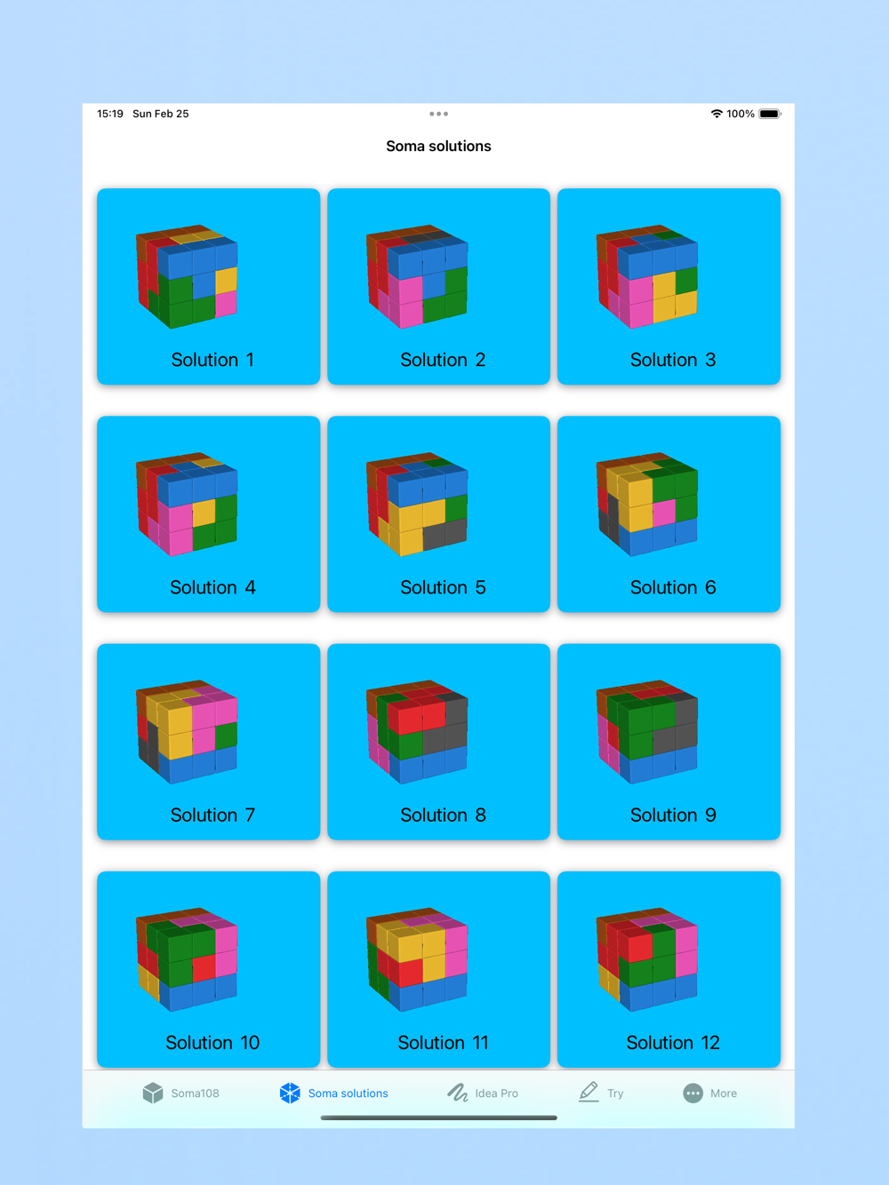 The Soma Cube, also known as Luban's Cube, is mostly magnetic nowadays and is often referred to as a Magnetic Magic Cube. However, it's not actually a magic cube. It consists of seven pieces that can form a 3x3 cube, as well as thousands of other shapes. There are multiple ways to assemble the same shape; for example, the cube can be put together in 240 different ways. It offers various challenges, including single-color puzzles and color-coded solutions, along with a numeric mode for educational purposes.Key Links: