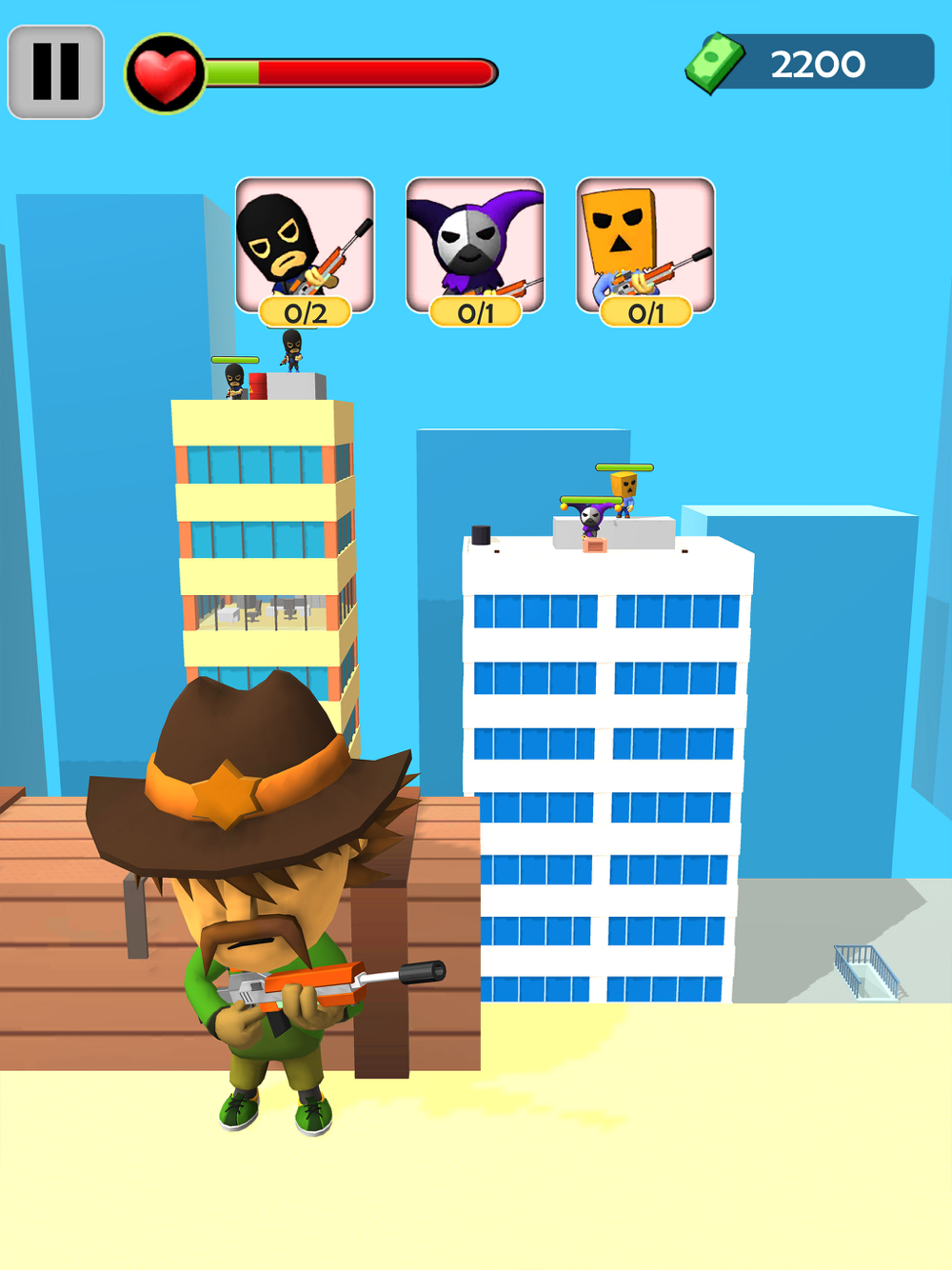 Upgrade your guns for sharper shooting. Clear the level to gets coins to upgrade your guns.