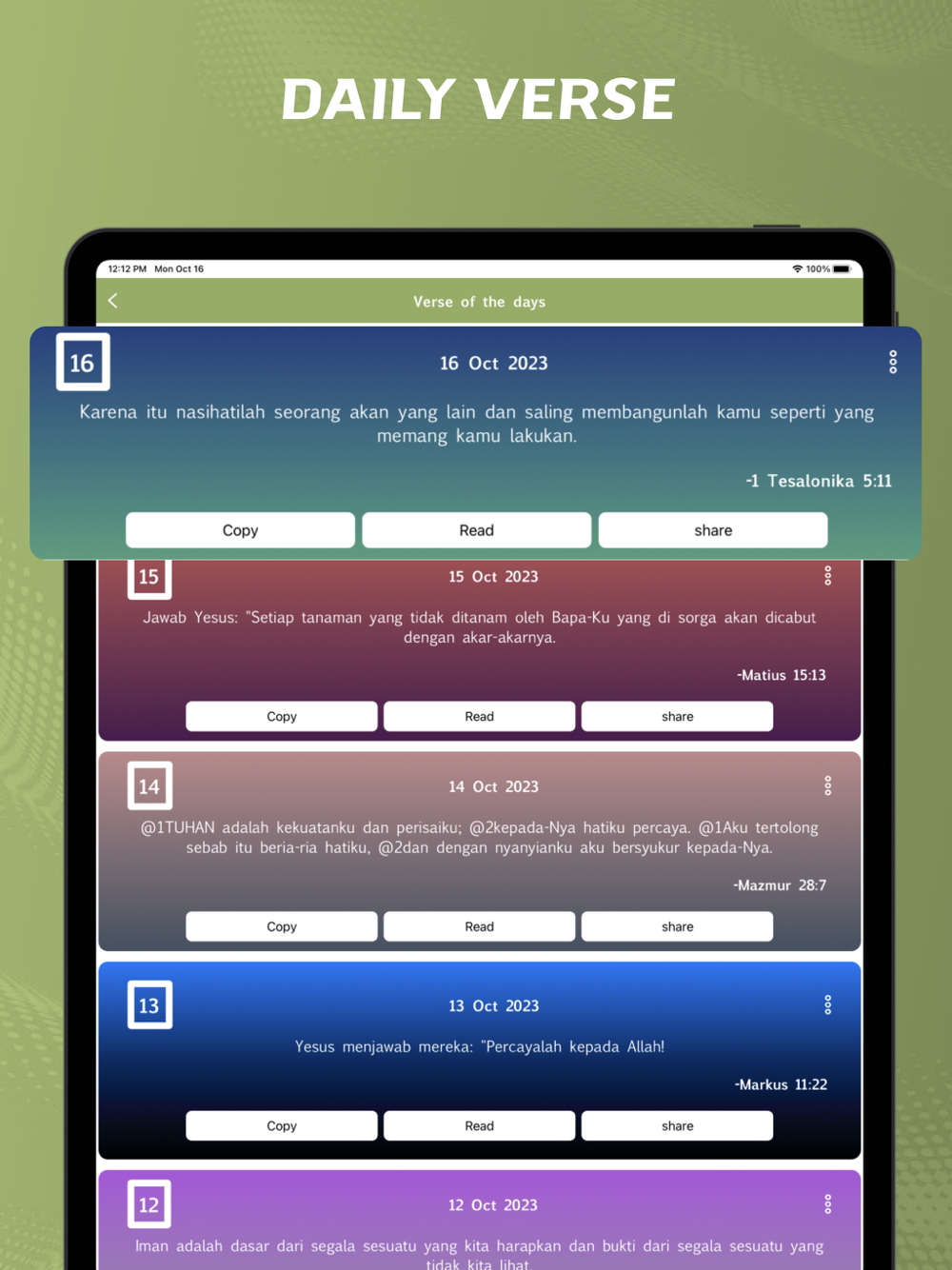 The parishioners now depend on the Heilige Bible Reading Plans to perform prayers at home. The individual small groups and those verses come as an Heilige Bible Reading Plans app from the house " Bible Reading Zone" brand.