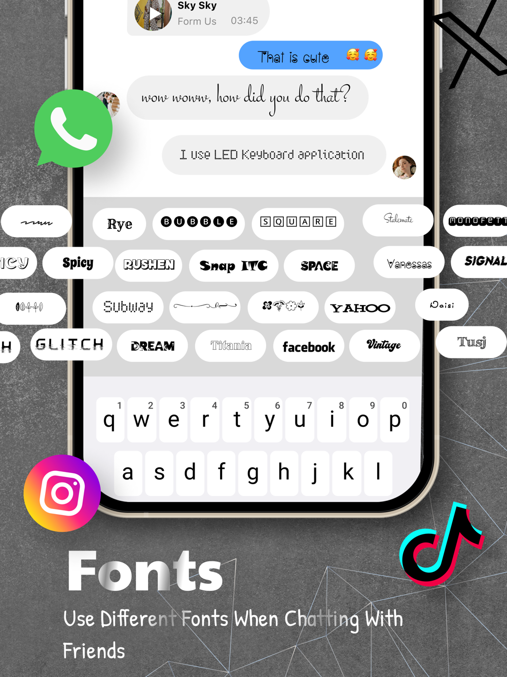 - Use fonts on the keyboard as well as in messaging apps such as Messenger, Message, Tiktok, WhatsApp, and Facebook posts.