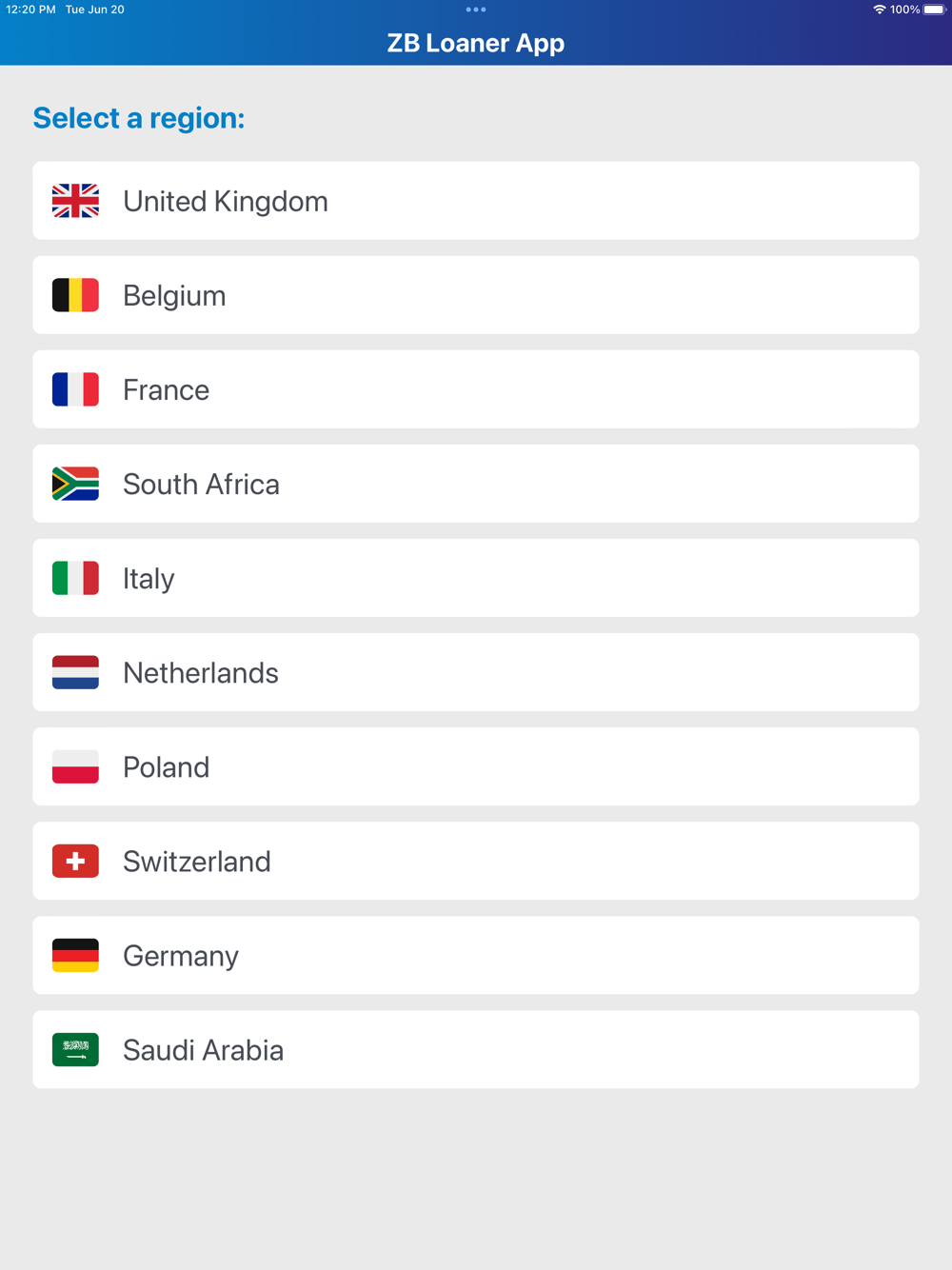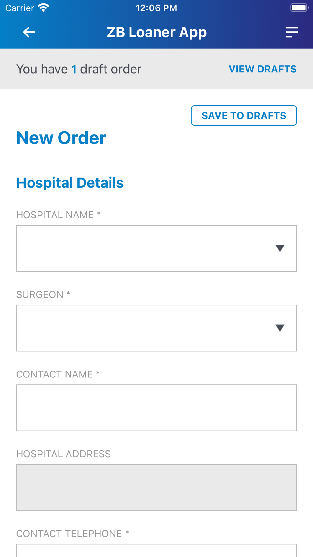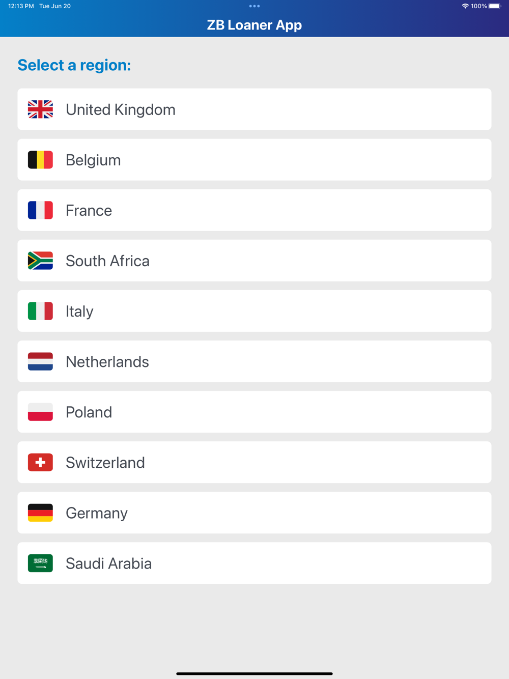 ZB Loaner App, from Zimmer Biomet, will streamline the process of identifying and ordering tools used in medical procedures involving Zimmer Biomet's products. This app takes sales representatives through a decision tree process which results in generating a notification to customer service containing the data required for the order.