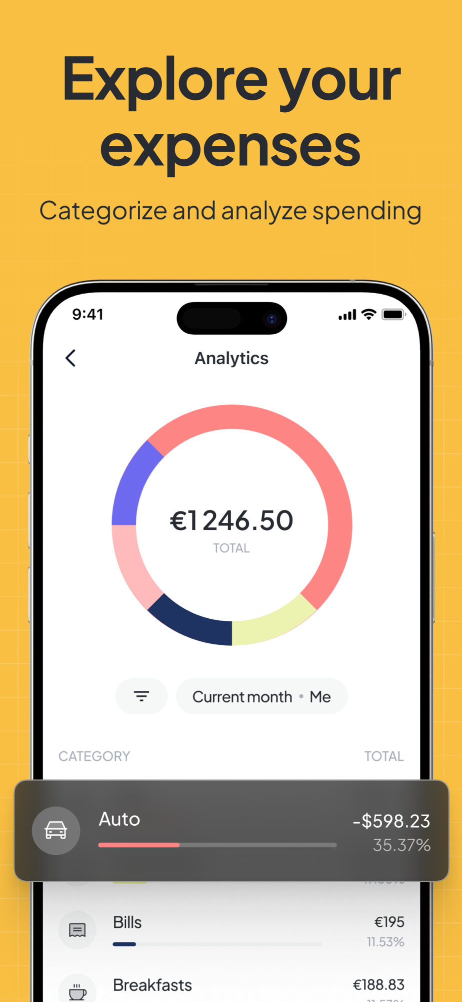 Lili sorts out your expenses into categories. This way, you can easily see where your money's going and find ways to save.