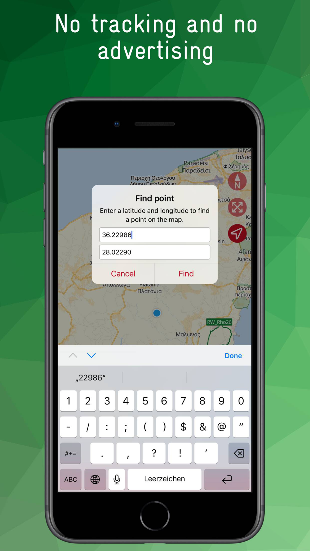 A location function shows the current position, the app is ad-free and there is no tracking.