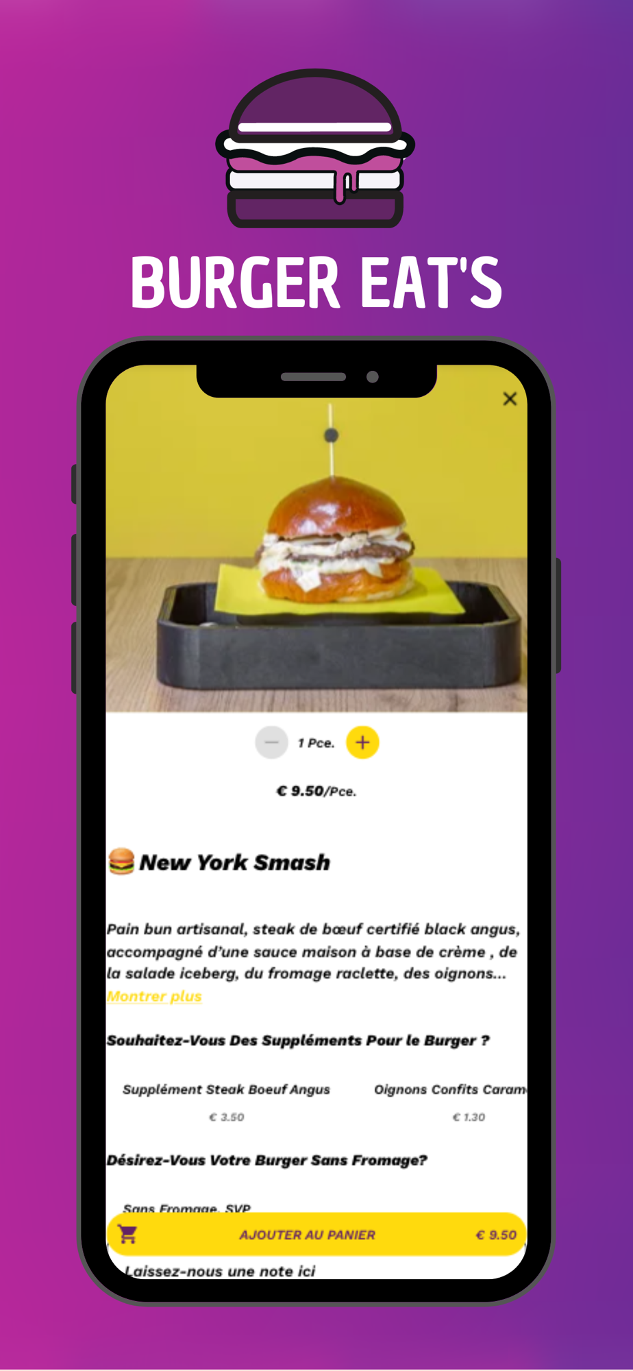 Où que vous soyez, avec l'application Burger Eat's, vous pouvez commander sans soucis parmi la vaste gamme.