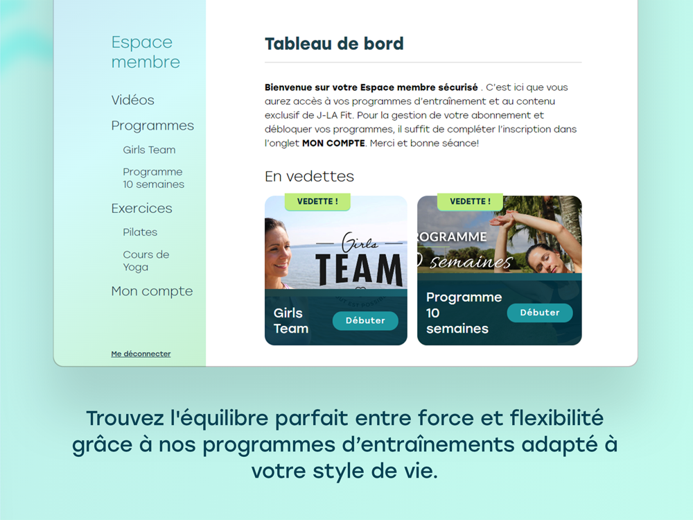 J-LA FIT est la plate-forme qui vous offre des bénéfices pour la santé et le bien-être de votre corps avec des séances variées et équilibrées pour tous les niveaux.