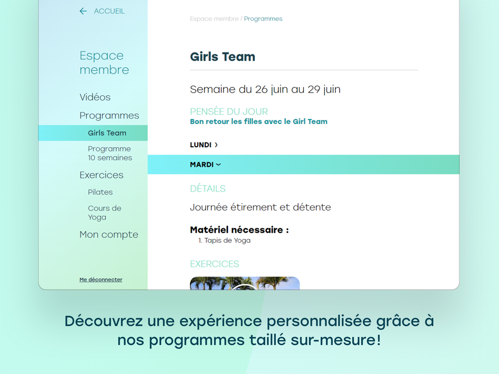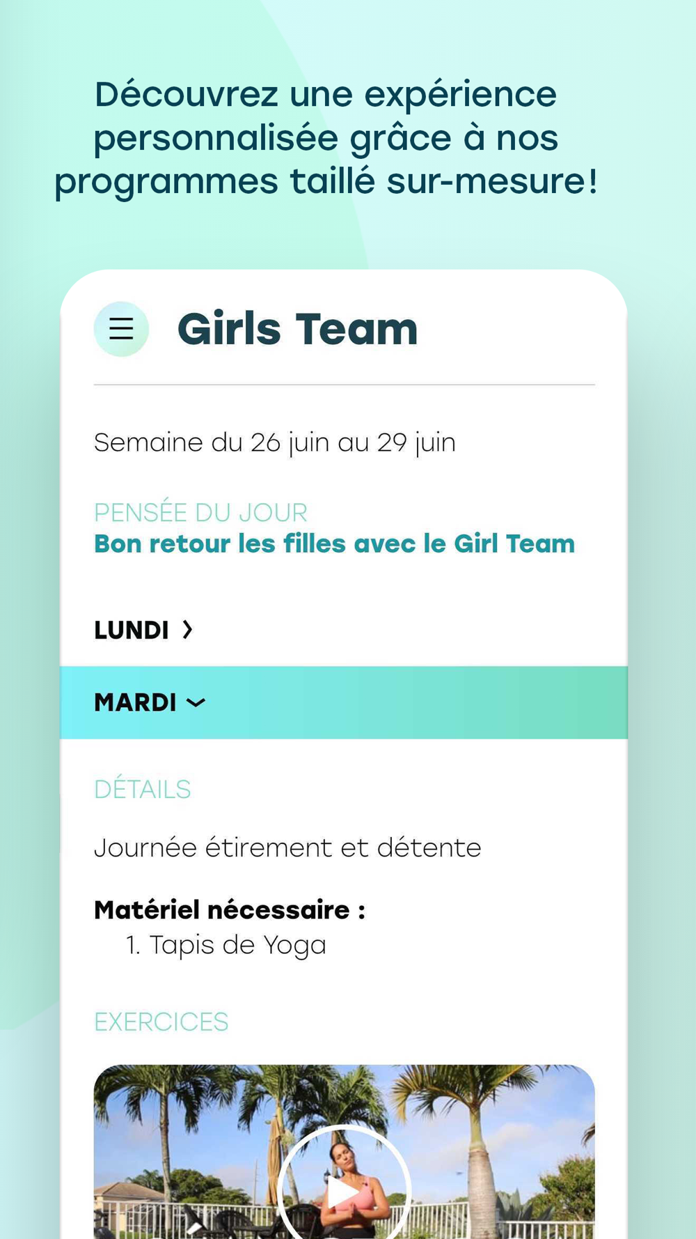 Vous allez découvrir le GIRLS TEAM, un groupe privé de filles et de femmes qui sont déterminées et qui partage leurs séances ce qui fait toute la différence sur la motivation à court et long terme.