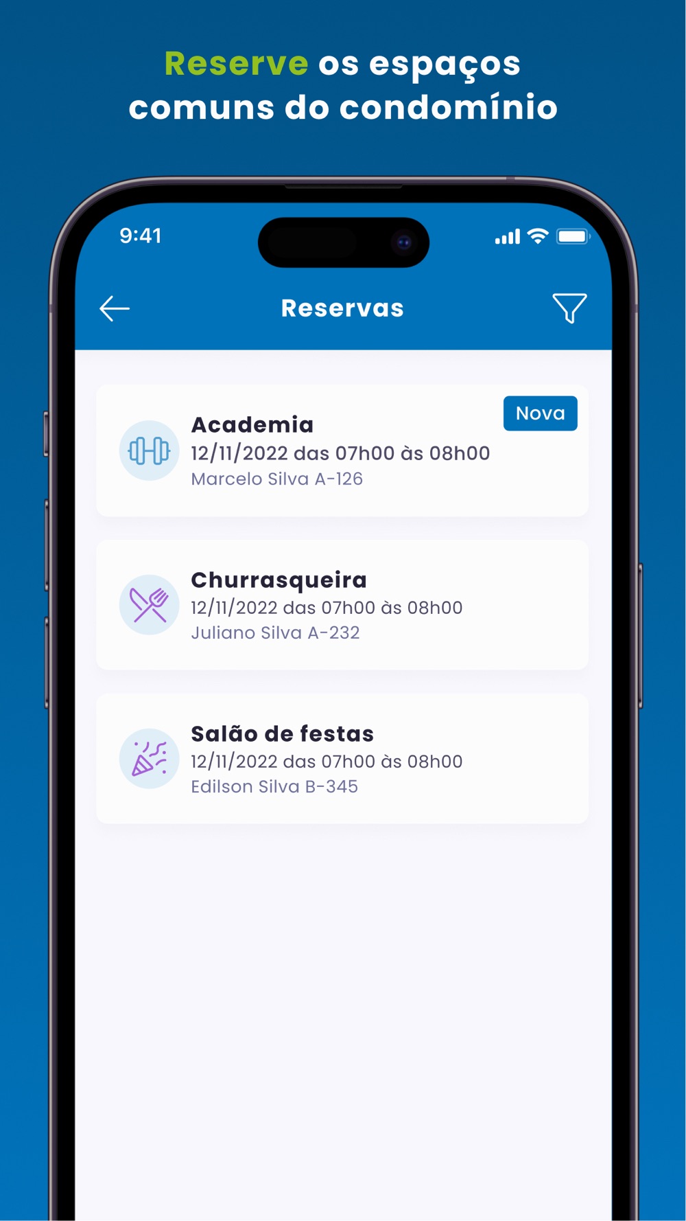 • RESERVAS: Moradores realizam reservas dos espaços comuns (churrasqueiras, salão de festas…) através do app Novolar Conecta. Chega de ligar na portaria ou síndico para consultar a agenda dos espaços.