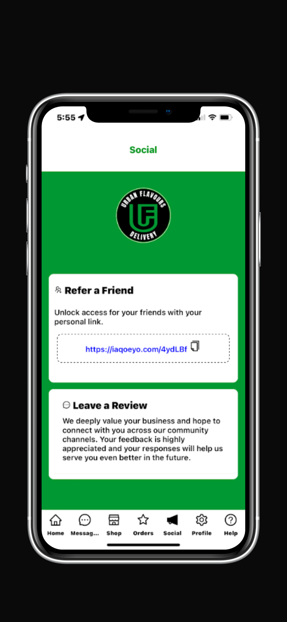 With your own personal referral link, you will be able to earn more points for every friend you refer to Urban Flavours Delivery.