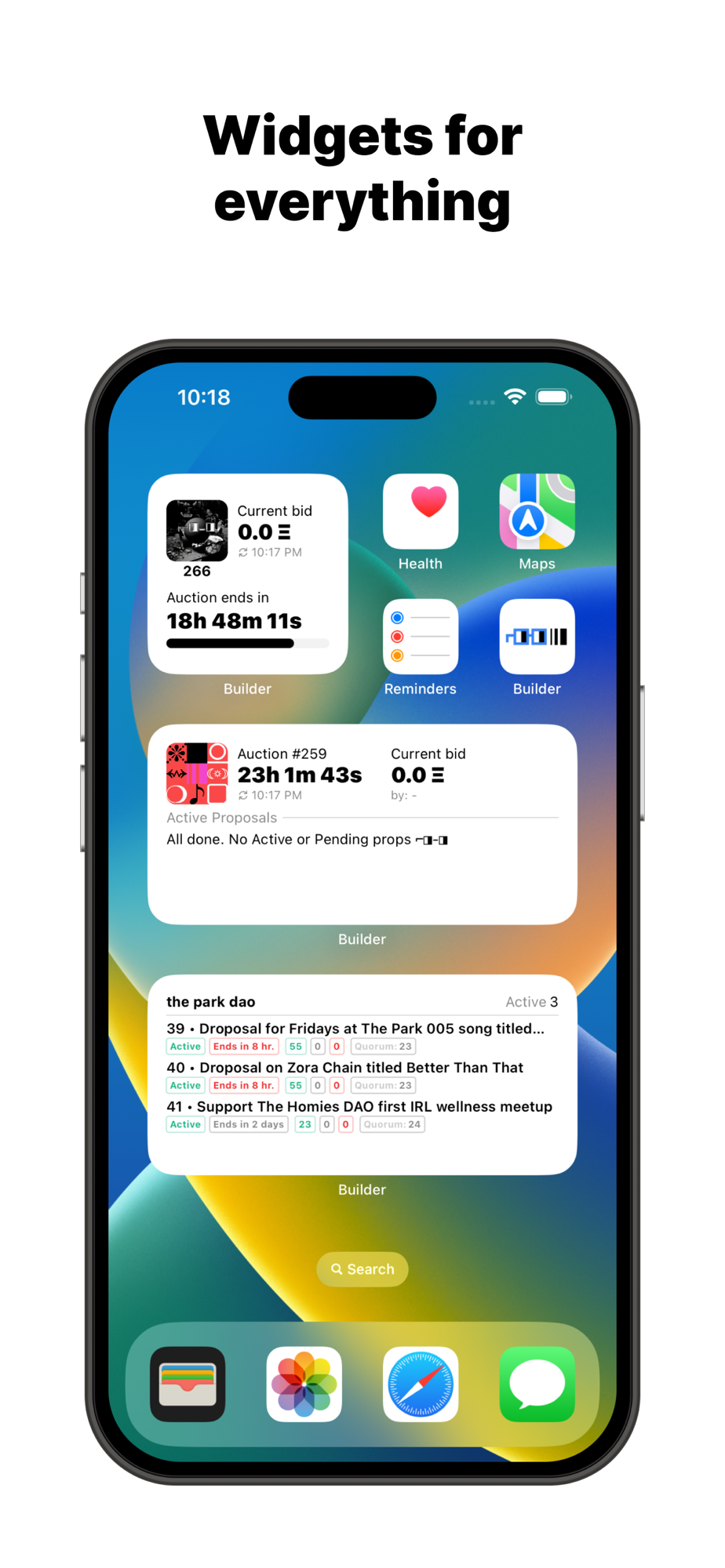 • Widgets for Everything: Customize your home screen with widgets! Track proposals, auctions, and more at a glance. No need to constantly open the app to check the auction or proposals for the DAO.