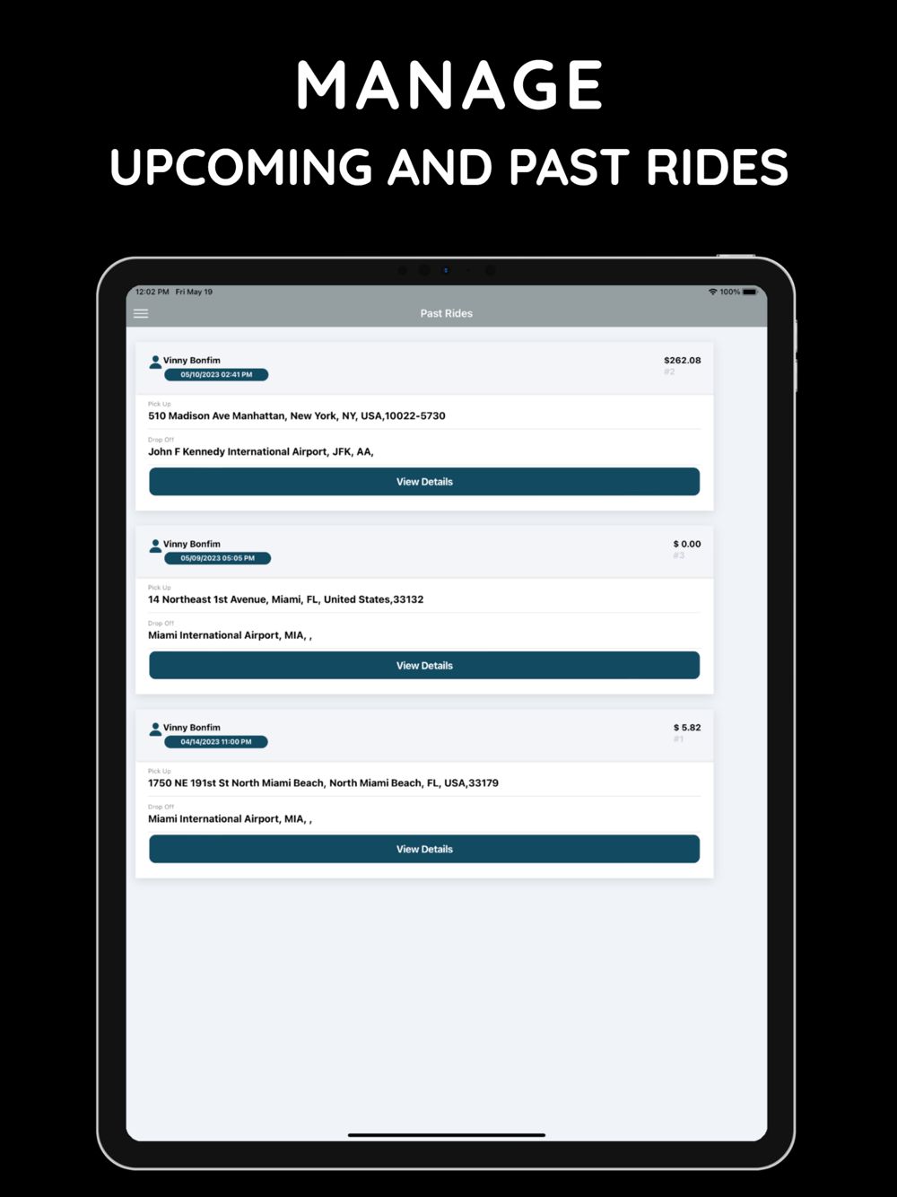 Receive text and email message updates with the driver’s contact information and arrival status.