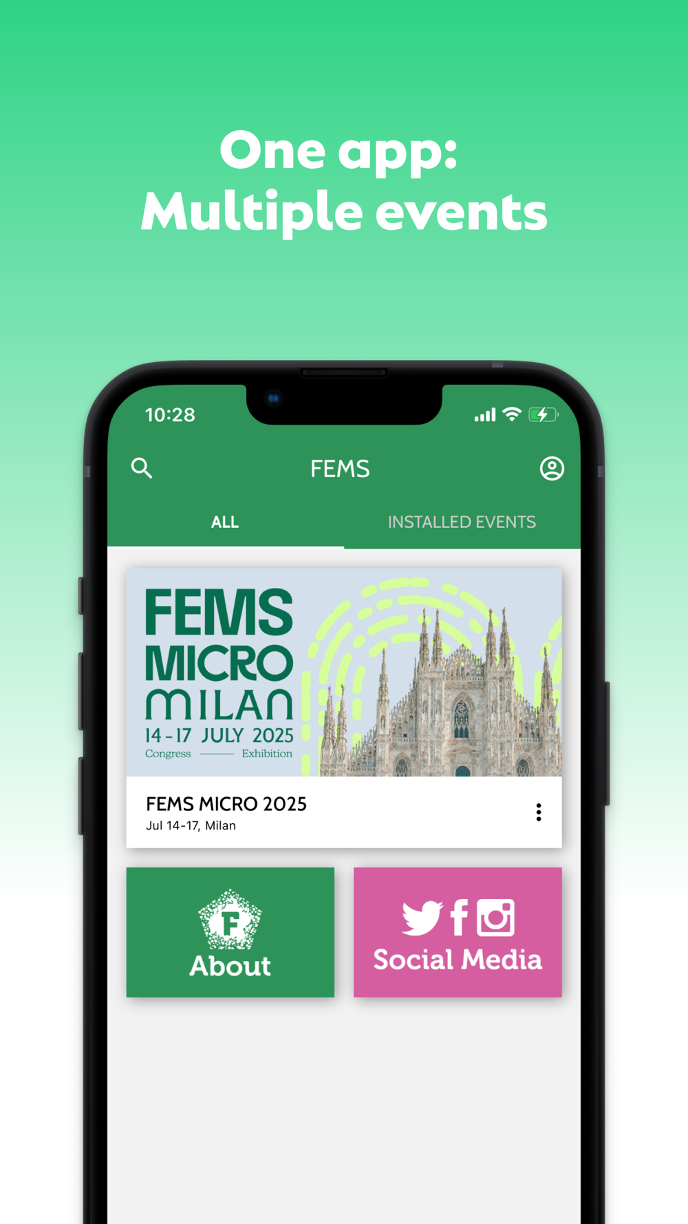 The FEMS MICRO app provides our users with access to the detailed programme underpinning our Congress & Exhibition and all relevant information about the event. It also provides up-to-date floorplans of the venue and Exhibition hall, as well as in-event connectivity through links to the FEMS Journals, our social platforms, information from our Partners, and a chat function for attendees. The app also allows FEMS to communicate with attendees, providing updates and messaging related to the FEMS MICRO Milan 2025: Congress & Exhibition.