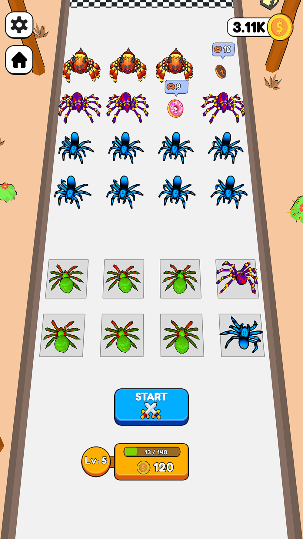 Merge insects and evolve to beat the level and upgrade your base to defend from enemy attack