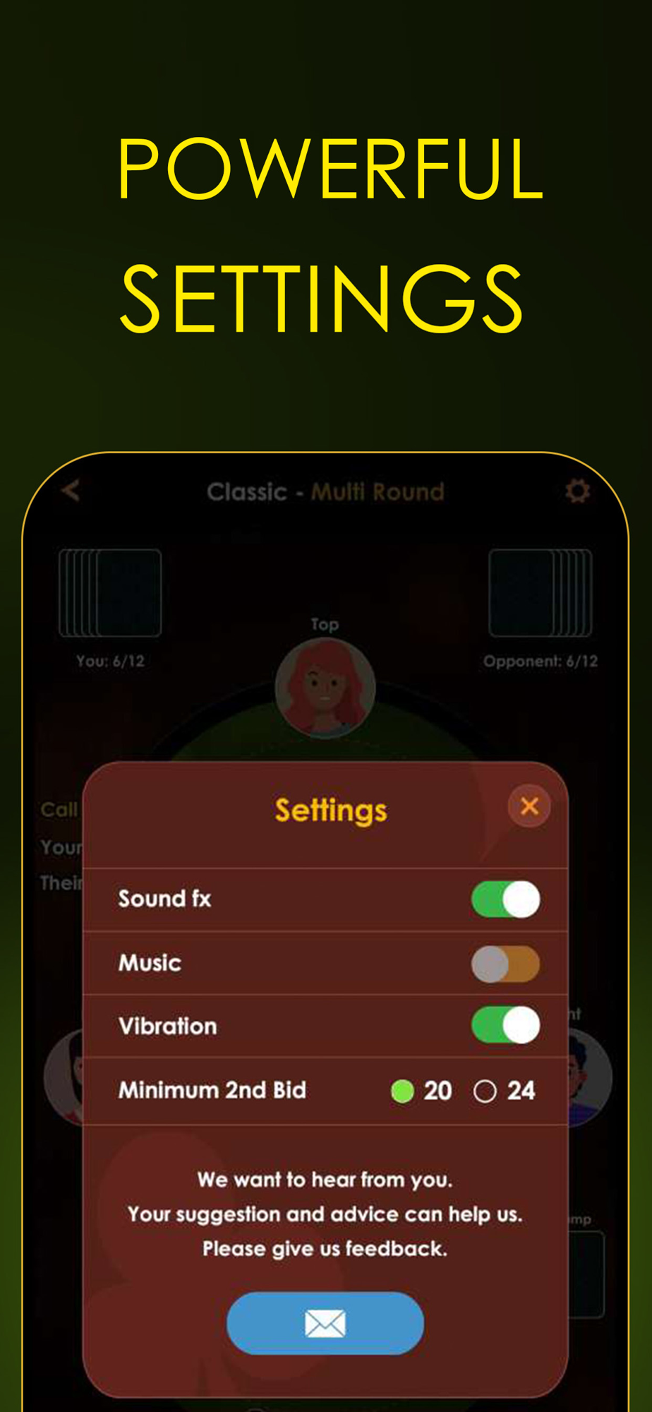 The Twenty-Eight Card game is an exciting and challenging trick-taking card game that involves two teams of four players each. It uses only 32 cards from a standard deck and is popular in South Asia. You need to be smart, attentive, and good at remembering cards to win this game. You can play this game Offline in two modes: classic and advanced. Each mode has a single-round and a multi-round option.