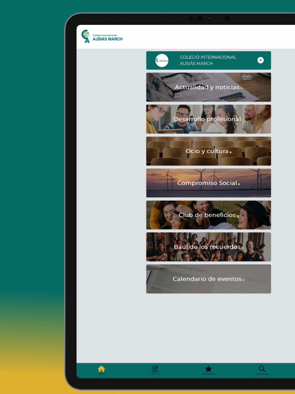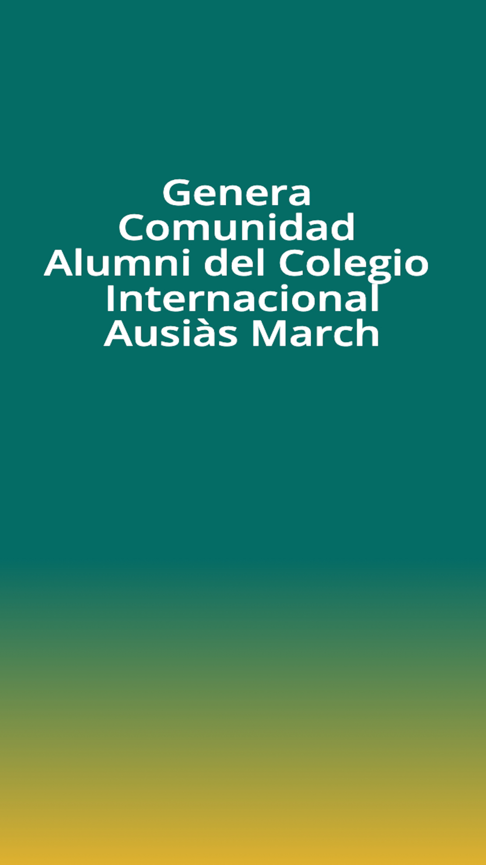 Plataforma de comunicación Alumni para todos los antiguos alumnos del Colegio Internacional Ausiàs March, en la que todos los usuarios podrán interactuar en su comunidad proponiendo actividades, encuentros, mejoras profesionales, etc. en un entorno de confianza y con intención de aportar valor entre todos los componentes que forman la comunidad.