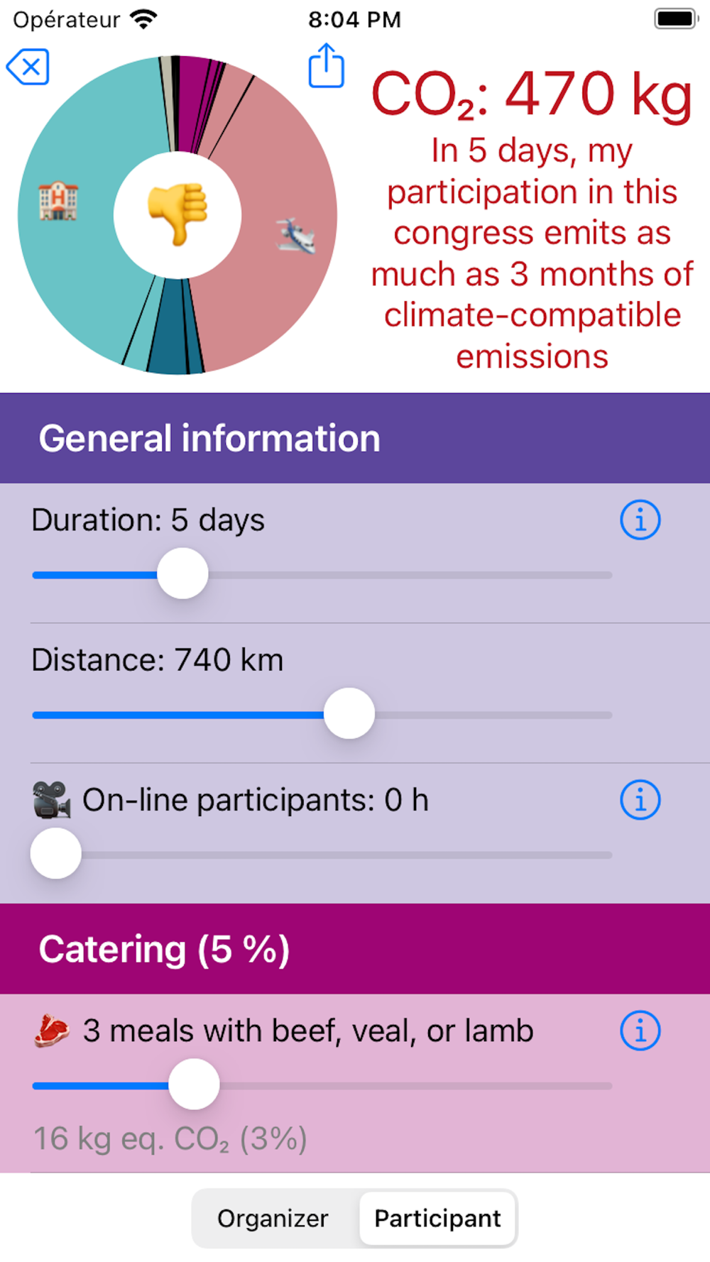 Are you organizing a conference or a congress? You plan to take part in it? In less than a minute, estimate its climate impact and test options to reduce its greenhouse gas emissions.
