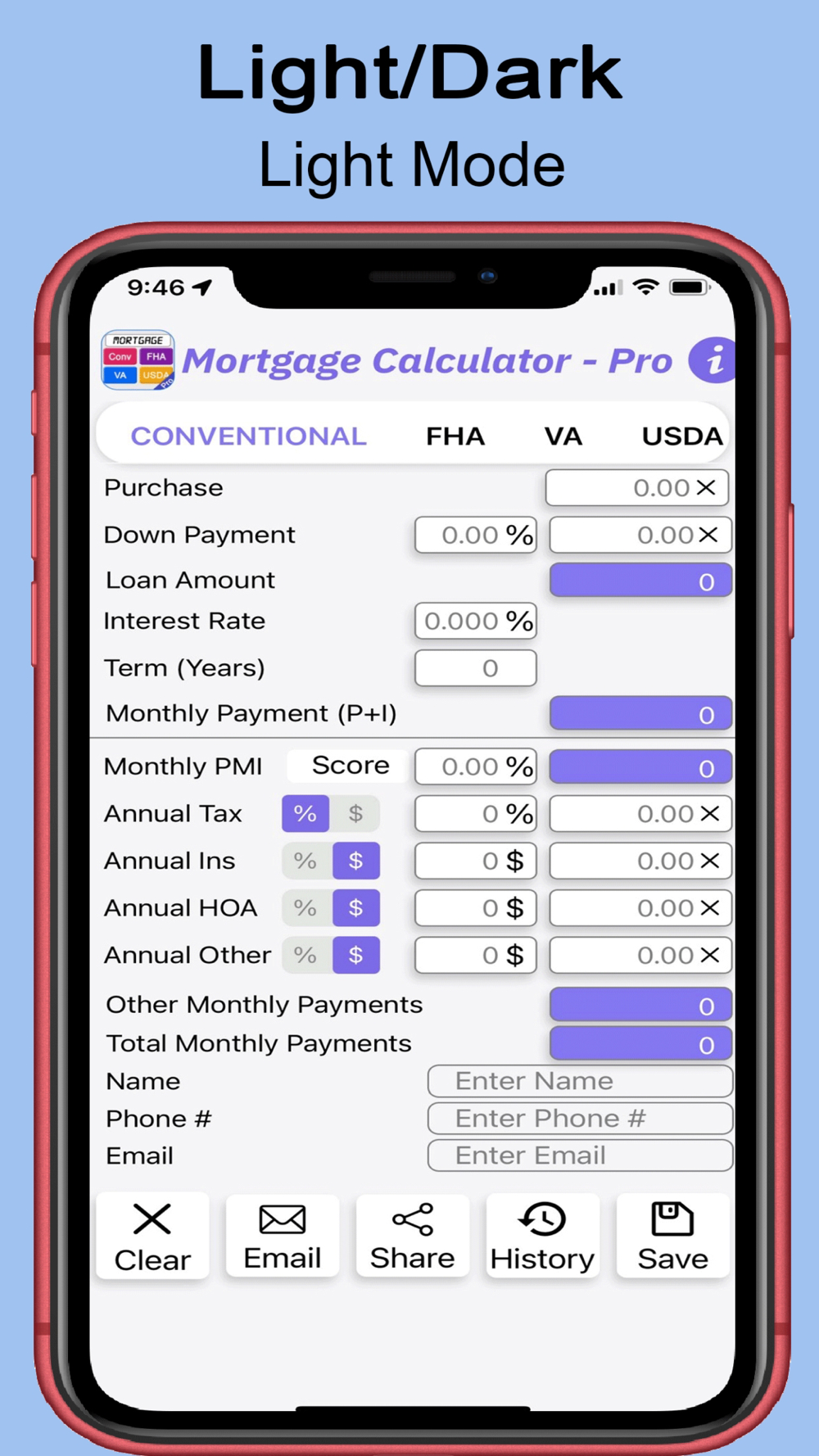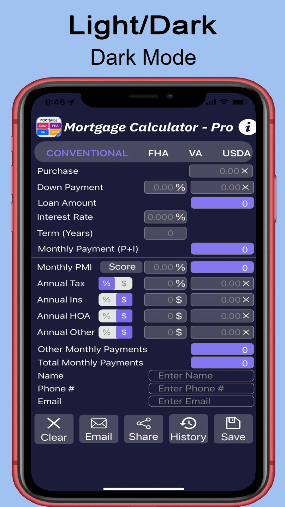 The Loan Payment Calculator calculates four most common loan types: Conventional, FHA, VA, and USDA. It is specially developed for Home Buyers, Realtors, and Mortgage Brokers to calculate the loan easily. The Loan Payment Calculator offers faster and straightforward functionality. Since it is on one screen feature, it saves time and gets the accurate calculation in seconds. The Loan Calculator app is available for iPhone and iPads.