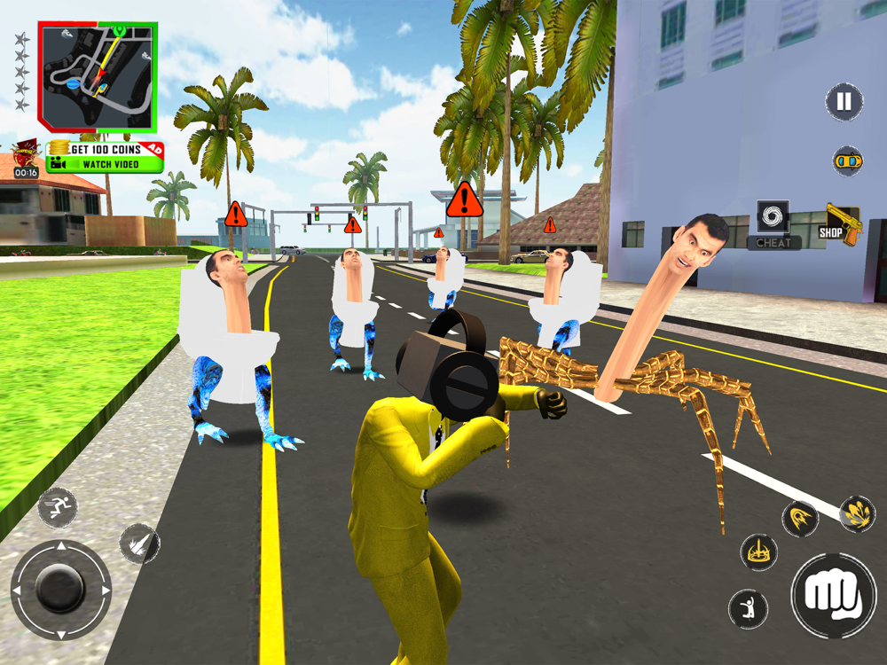 The gameplay mechanics of "Vice Cameraman: Toilet Gangster" combine elements of stealth, investigation and action. Use your stealth skills to infiltrate gang hideouts, avoid detection and quietly gather clues. Engage in intense shootouts and high-speed chase sequences as you confront rival gangs and their enforcers.