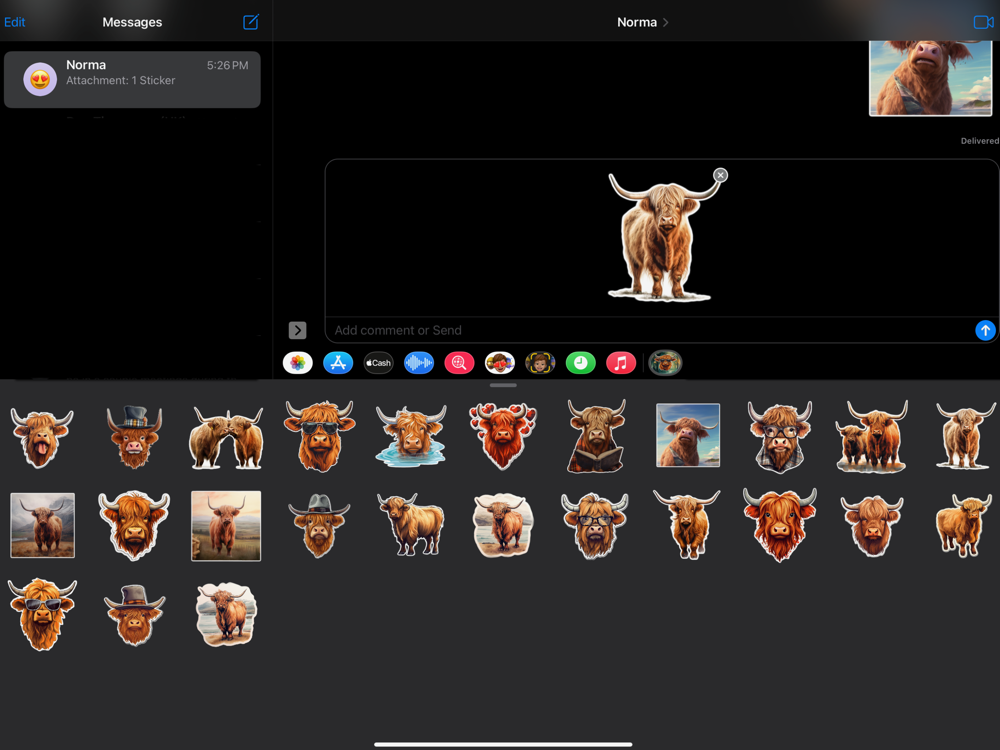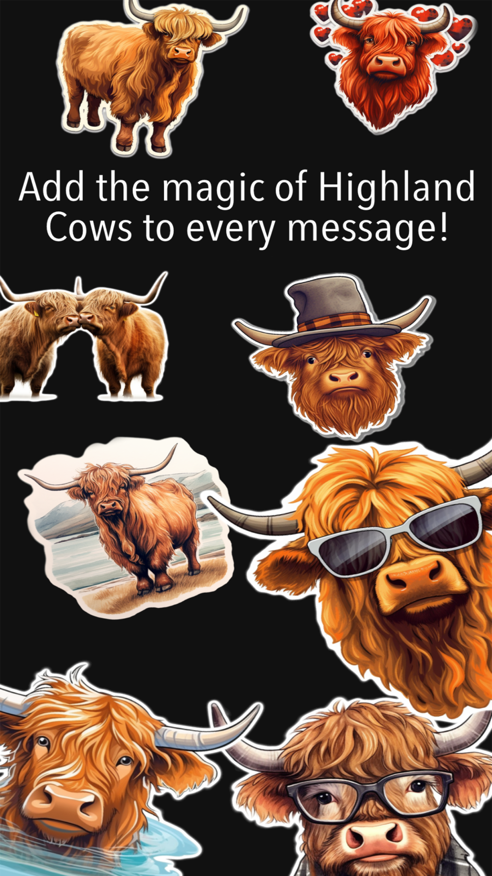 Get ready to moo-ve your friends with the charm of our Highland Cows iMessage Sticker Pack! It's more than a pack; it's a pasture full of fun!