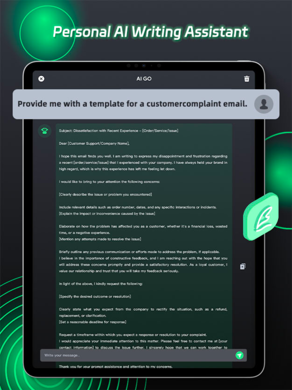 Stop wasting time and money on content and copy writing! AI GO provides personalized support for any writing project, from emails and speeches to lyrics and poems. With the app's advanced grammar and spelling checker, you can quickly correct any mistakes in your text. But that's not all - the powerful AI-powered tool can also rewrite your text, transforming it into a more engaging, coherent, and professional piece of writing. Whether you're a copywriter, student, or business professional, AI GO is the perfect tool to help you elevate your writing to the next level.