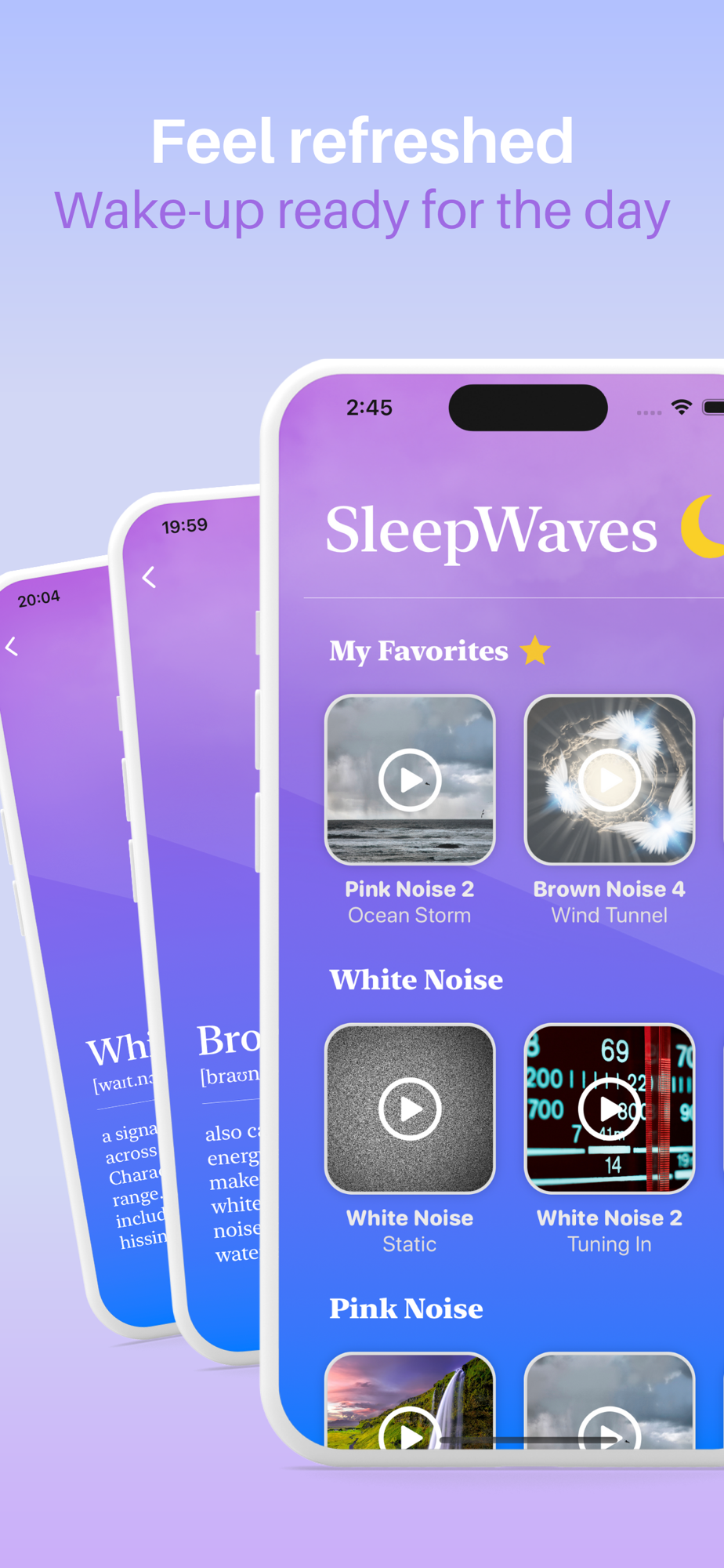 Personalized Favorites: Tailor your sleep experience by curating a collection of your favorite sounds. With SleepWaves, you can effortlessly save and organize your go-to melodies, ensuring they're always at your fingertips.