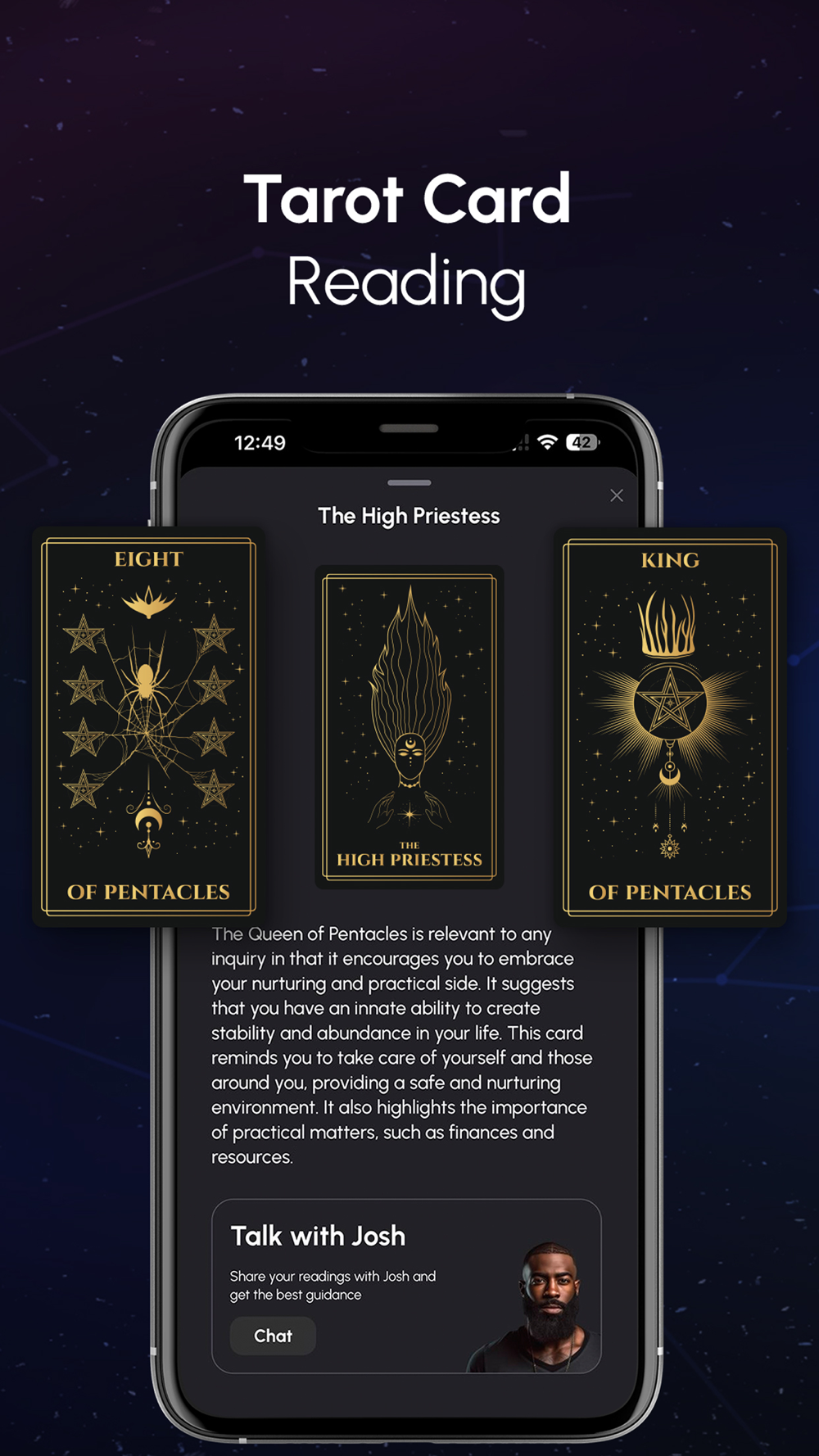Delve into the mystical world of tarot, where you can receive accurate readings that offer guidance and perspective on your life's questions. Uncover hidden truths and find the path to your desires. With the enchanting realm of tarot card reading, embark on a transformative voyage, discovering the roadmap to your deepest desires and aspirations. Whether you seek answers about love, career, or personal growth, our tarot card reading application is a portal to the ethereal, providing clarity and enlightenment to navigate the complexities of life.