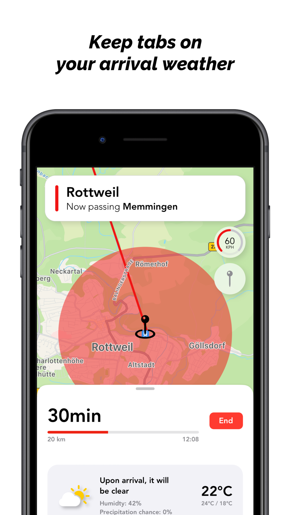 Destinations will tell you where you are currently passing, your arrival time, how long until you’re there, how far away you are, and even your speed!